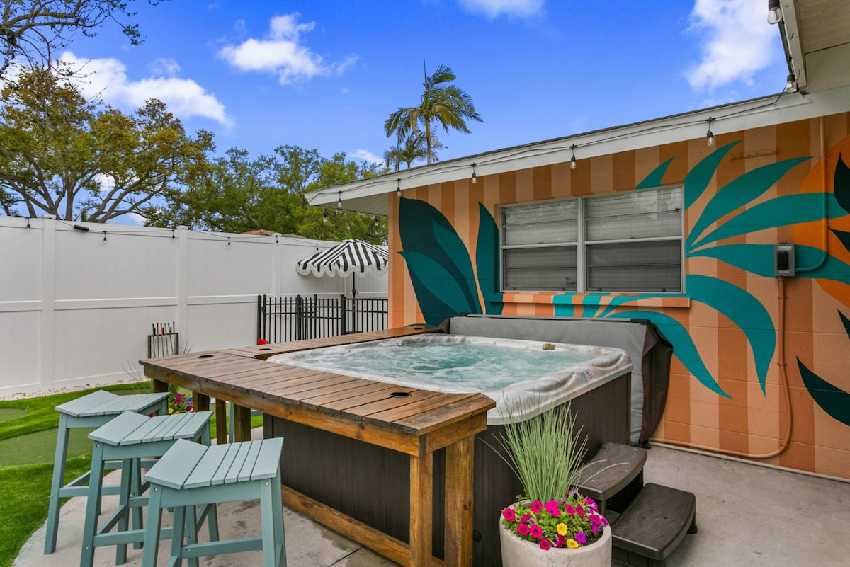 Merħba f' Wellness Resort Bradenton, 13-il minuta 'l bogħod mill-Gżira Anna Maria famuża mad-dinja kollha! Dal-post fejn toqgħod għall-kwiet tfassal biex toffri l-aqwa esperjenza ta' mistrieħ u divertiment, b'kamp tal-pickleball u tal-basketball, hot tub, plunge pool kiesħa, sawna, pixxina, fire pit, kamra tal-massaġġi awtomatika u disinn ta' ġewwa mill-isbaħ. Ideali għal 10 klijenti, kemm jekk huma vaganza ta' sħabek, vaganzi ta' koppji, irtirar korporattiv jew żjara ta' rkupru. Ibbukkja issa u oħloq tifkiriet li ma tintesiex f'post li jixbah il-ġenna!