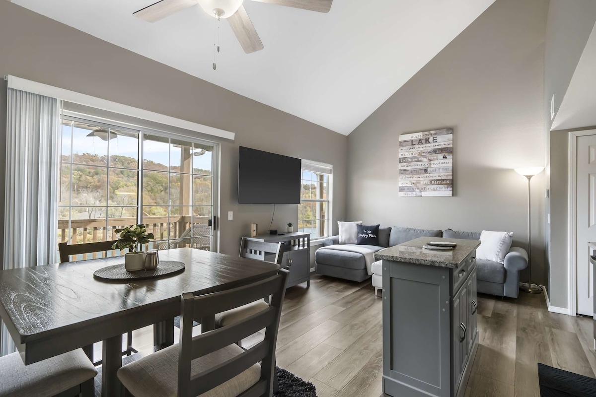 Din il-conddo 2BR/2BA hija perfetta għal dawk li jħobbu l-lagi, dawk li jaraw is-sema u għal kull min jixtieq ikun kwiet b' veduta. Gawdi minn veranda privata 24’, sodod king fiż-żewġ kmamar u interjuri ispirati min-natura. Il-klijenti għandhom aċċess għall-pixxina staġjonali u għall-hot tub (normalment miftuħa Jum Memorial sa Jum il-Ħaddiema - jekk jogħġbok staqsi għal dati eżatti), grawnd sportiv, park tal-logħob, bajja taż-żibel, mogħdijiet għall-mixi, u Indian Point Marina-plus Silver Dollar City, prattikament fil-qrib. Irqad 4.