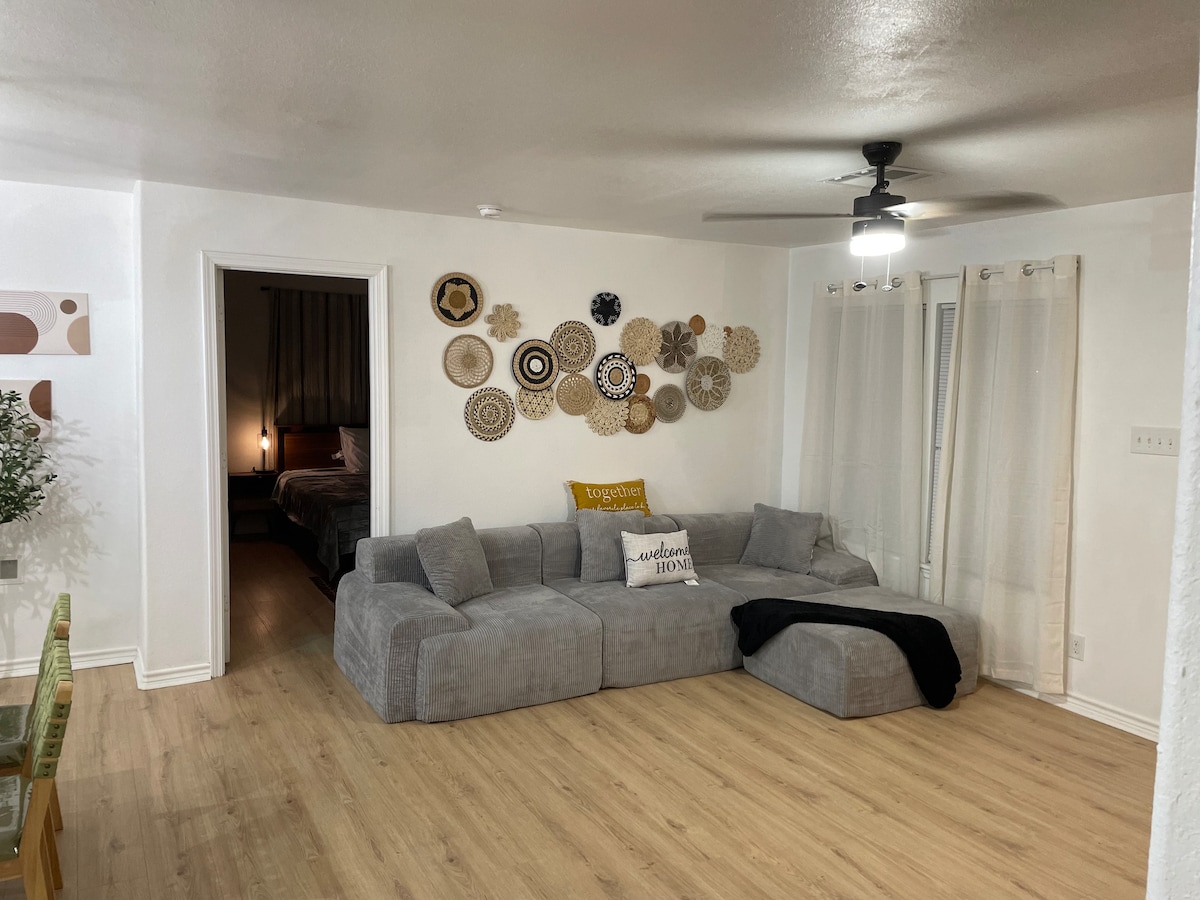 Experience comfort and convenience in this private guest house — perfect for business travelers, couples, or families. Just 1.6 miles from NASA Johnson Space Center and minutes from Space Center Houston with astronaut exhibits, interactive displays, and a real Saturn V rocket! 🚀 ✔ Spacious upstairs apartment ✔ Cozy living room ✔ Full kitchen, bath & laundry ✔ Ample parking (covered + street) ✔ Safe, quiet neighborhood
