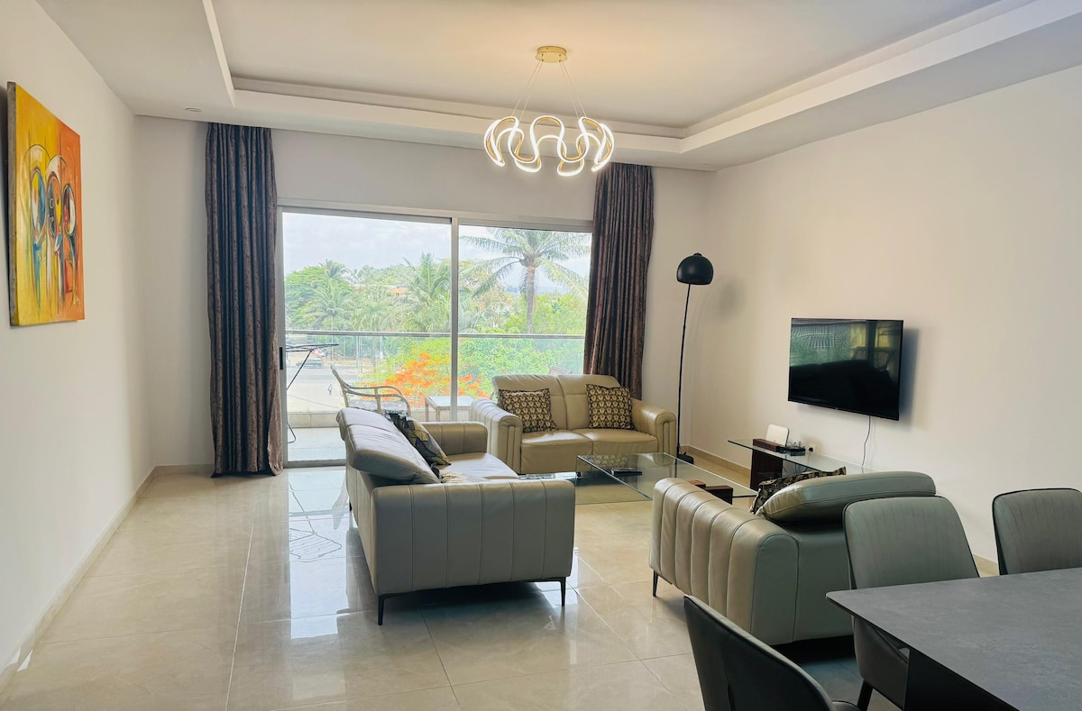 Merħba fl-appartament modern tagħna fid-distrett tal-GB, qrib iċ-ċentru tal-belt. Din id-dar b' 2 ikmamar tas-sodda, inkluża waħda b' kamra tad-doċċa en-suite, hija ideali għal żjara komda. B' aċċess għall-Wi-Fi, arja kkundizzjonata, kċina mgħammra b' kollox u sigurtà 24 siegħa kuljum ipprovduta minn gwardjan tal-pulizija, se tgawdi mill-aħjar kumdità. Tank tal-ilma u ġeneratur jiggarantixxu żjara mingħajr interruzzjonijiet. It-terrazzin, li jagħti fuq it-triq, iżid il-faxxinu ma' dan l-ispazju li jilqgħek.