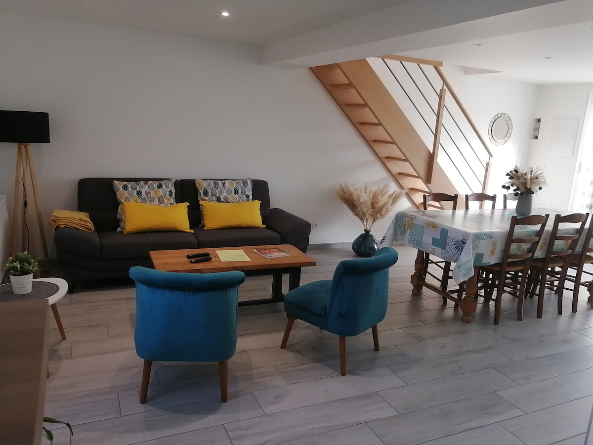 Dar ġdida ta '70 m2, il-kumditajiet kollha, li tinsab 300 m' il bogħod mill-bajja u ħwienet f' resort kwiet u tajjeb għall-familji 10 minuti' l bogħod minn Granville. Kċina mgħammra, friġġ, forn tal-cooktop tal-induzzjoni, forn tal-kafè microwave, 3 kmamar tas-sodda b 'sodda ta' 160, sodda waħda ta' 140 u 2 sodod ta' 90. Sufan sodda 1. 2 kmamar tal-banju, doċċa u banju. Spazju fuq barra tat-TV b 'għamara tal-ġnien, barbikju tal-kabina, Tagħmir tat-trabi disponibbli: Sodda Wifi u konnessjoni tal-internet skont il-kaxxa