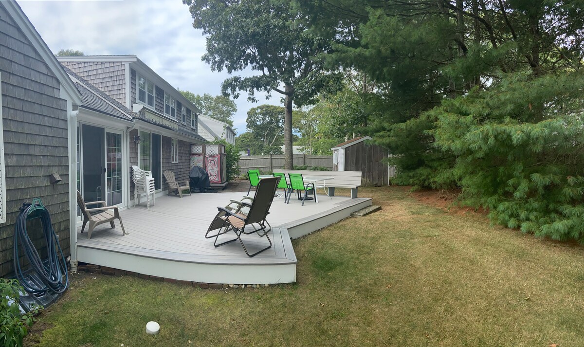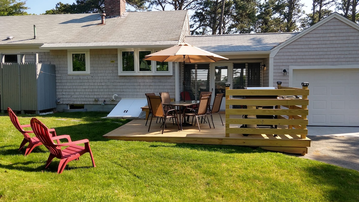 L-oażi tiegħek biex tirrilassa, pjuttost triq, bitħa privata fuq wara bi gverta kbira, grill tal-gass, doċċa fuq barra, bedseway u deck ta 'quddiem. Madwar mixja ta '5 minuti lejn żewġ bajjiet tal-oċean fuq Nantucket Sound. Gawdi l-kafè ta 'filgħodu tiegħek fuq bank tal-park hekk kif ix-xemx togħla fuq l-oċean. Distanza bil-mixi permezz tal-bankina lejn il-bajjiet, ristorant tal-frott tal-baħar, il-moll tax-xmara Bass u mitħna tar-riħ Joshua Baker. Il-kirjiet ta 'kull ġimgħa bejn is-Sibt u s-Sibt mill-aħħar ta' Ġunju sal-bidu ta' Settembru.