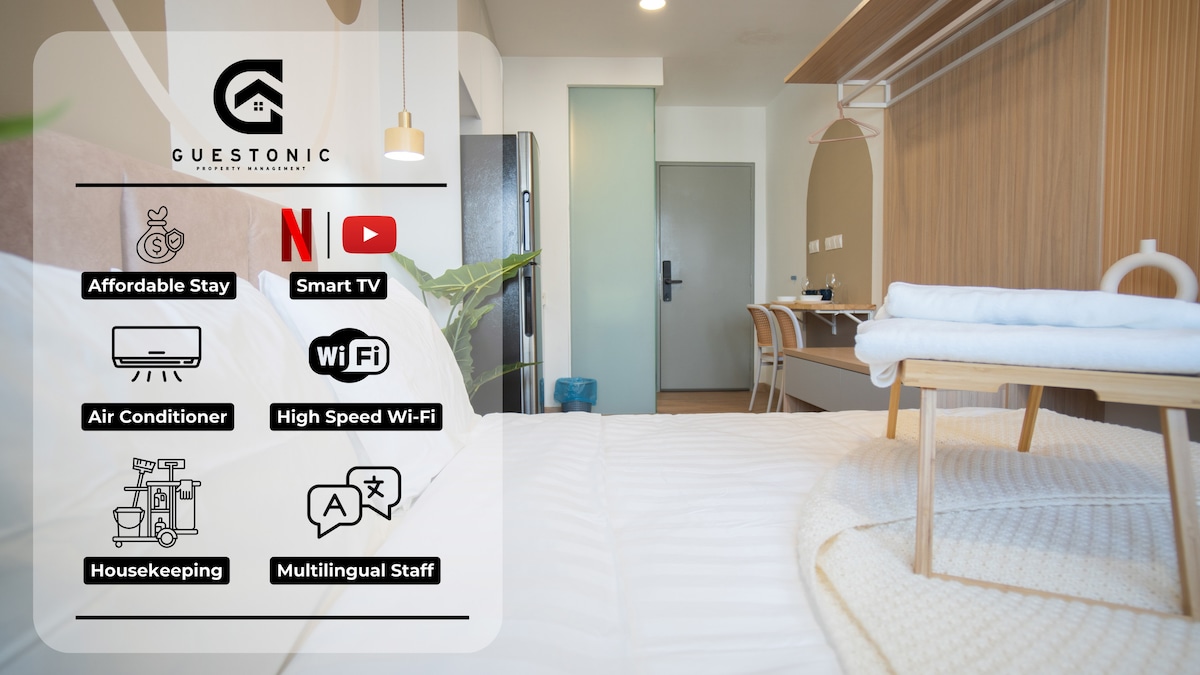 Aħna nipprovdu parkeġġ tal-karozzi b 'xejn lill-klijent. Dan huwa studio kontemporanju, uniku u żagħżugħ. Jaħdem għal klijent b 'attenzjoni għall-kreattività li jieħu gost ikun imdawwar b' kollezzjonijiet personali. L-unità għandha sens ta 'ħajja ħafna minkejja d-daqs kompatt. L-atmosfera hija ħafifa u flessibbli, mill-paletta tal-kulur sal-għażla ta 'għamara maħlula, xkafef li jżommu f' wiċċ l-ilma u armarju. Ġewwa se ssib air-cond, hod tal-kċina u hoob, purifikatur tal-arja, dryer tal-washer, friġġ u broadband tal-internet.