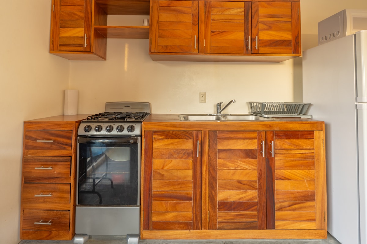 Dan il-post uniku għandu stil kollu tiegħu. Għandha sodda ta' daqs queen, a/c, internet eċċellenti (STARLINK), kamra tal-banju privata b' ilma sħun, smart tv u armarju. Kċina żgħira, friġġ perfett jekk tixtieq issajjar il-platti favoriti tiegħek waqt il-vaganza. Għandu wkoll gallarija b 'veduta sabiħa perfetta biex tieħu kafè u tirrilassa. Aħna ninsabu inqas minn 3 minuti 'l bogħod mill-bajja ta' zicatela u tinsab f' viċinat paċifiku (jinsab it-tielet sular)