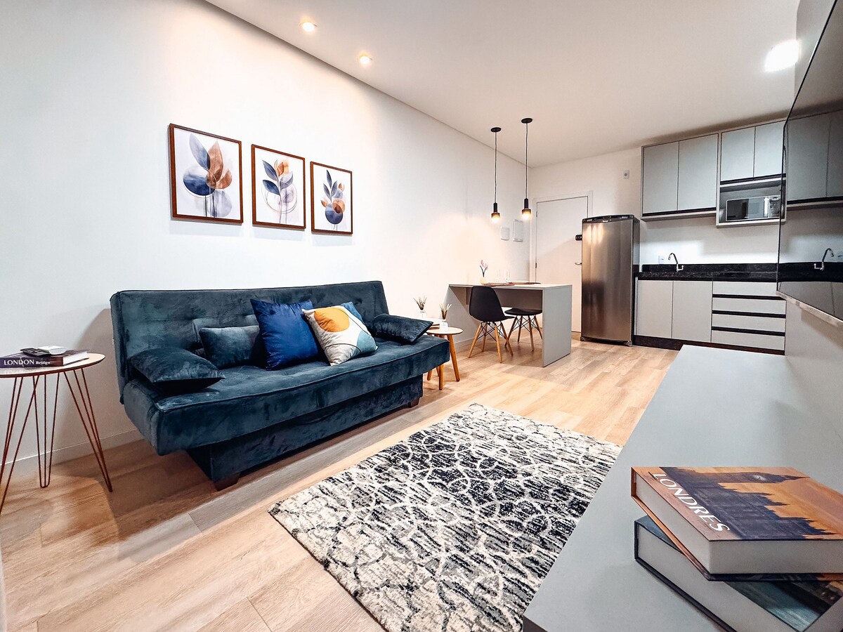 Aproveite uma estadia confortável e moderna em Brusque! Apartamento completo, com ar-condicionado, Wi-Fi rápido, TV com Fire TV Stick (Amazon), cozinha equipada (micro-ondas, air fryer e cafeteira) e garagem privativa. Localização excelente, próxima ao centro, shoppings e principais pontos da cidade. Ideal para casais, famílias ou viagens a trabalho — aqui você se sente em casa desde o primeiro dia!