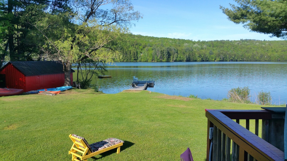 Private waterfront Cabin in woods, nestled off private dirt road near Mt. Abrams and Sunday River. Kayak, swim & fish in pristine lake in Summer. Skate, XC Ski, Ice Fish, Snowshoe, Hike in Winter. Fireplace and Fire Pit. Excellent wifi - Private, quiet remote workspace. Rustic modern cozy decor: fully-equipped stainless steel kitchen with dishes, utensils, pots, pans, coffee maker & espresso machine. Organic linens. Pristine bathroom-large hot shower area, heat lamp, soaking tub.