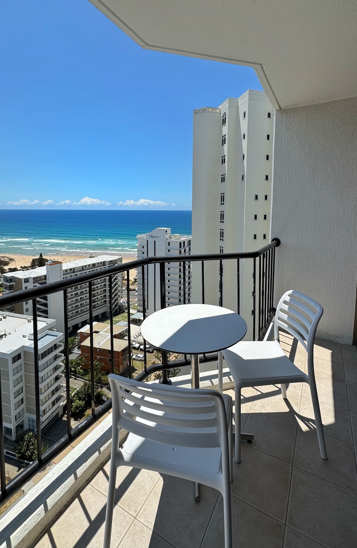 Appartament faċċata tal-bajja li jinsab fuq sular għoli b'twieqi mill-art sas-saqaf, gallarija privata b'Veduti tal-Oċean u aċċess għall-bajja ta' Surfers Paradise li tinsab eżatt quddiem il-bini. L-appartament għandu sodda doppja fil-kamra tas-sodda u għandu sufan doppju fis-salott. Kċina mgħammra b' kollox, Wi-Fi b' veloċità għolja, arja kkundizzjonata, TVs b' Netflix u YouTube, parkeġġ bla ħlas u ħasil privat komplut. Il-klijenti se jkollhom aċċess għall-gym, l-ispa, is-sawna, il-pixxina u l-BBQs qrib il-pixxina u fuq it-terrazzin tal-bejt.