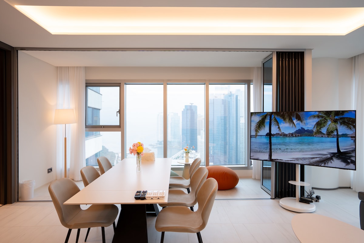 Gwangalli Moderna • Sular għoli + garanzija ta' kamra spazjuża • Gwangan Bridge Front Panorama Ocean View • Ma jistax jitqabbel • Sekonda bogħod mill-baħar • Salott | Kamra tas-sodda separata • L-indafa