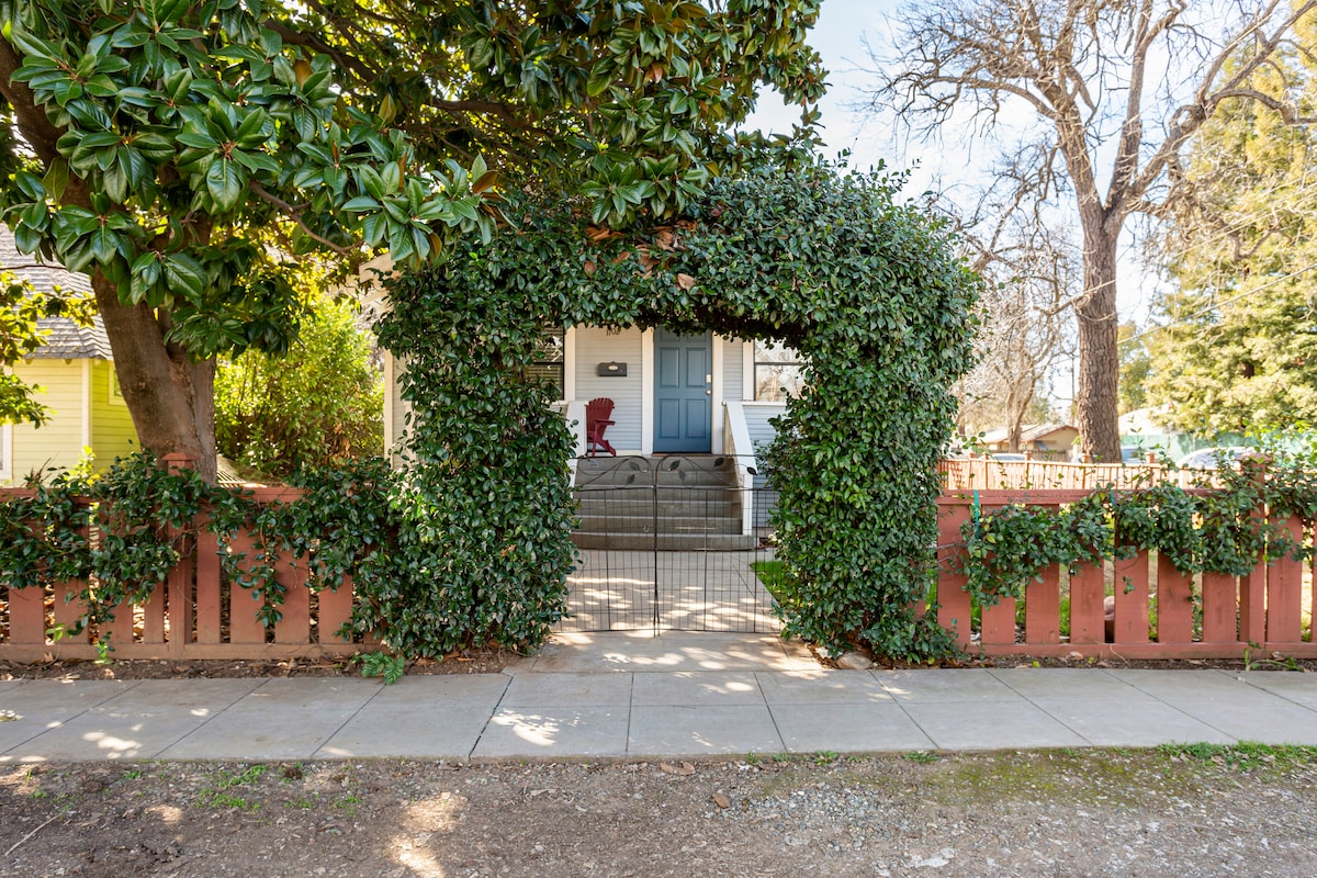 Din il-cottage ġiet kompletament immodernizzata fl-2020. Jinsab fuq in-naħa ta’ wara tal-propjetà tagħna u warajh hemm ġnien. Il-propjetà hija 'l fuq minn ettaru. Huwa kwiet u paċifiku. Se ssib siġar tal-frott, għeneb, ġnien u tiġieġ. It-tiġieġ jimxu mal-propjetà matul il-jum. Hemm terrazzin mgħotti u fossa tan-nar biex tgawdi l-lejl ġewwa Chico. Jekk tixtieq issajjar fuq barra hemm BBQ tal-gass u grill tal-gerbub/tipjip. Jinsab 1.8 mili ’l bogħod minn Chico State u miċ-Ċentru tal-Belt.