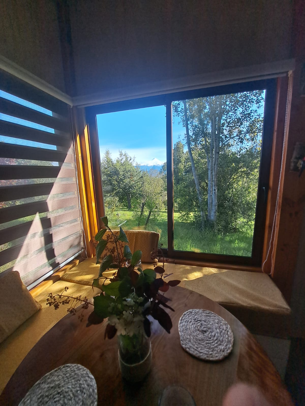 A 45 minutos (32 km) de Pucón, hermosa cabaña alpina inserta en el bosque, pensada para una experiencia de desconexión y vida simple. Silencio, canto de aves, árboles nativos, sol y lluvia cordillerana, con excelente WiFi. Contamos con energía eléctrica convencional e incorporamos energía renovable para ser más conscientes con el planeta. Calefacción estufa a pellet y cocina a leña, para quienes valoran la vida simple y consciente. Si amas el bosque más que los lujos urbanos, esto es para ti!