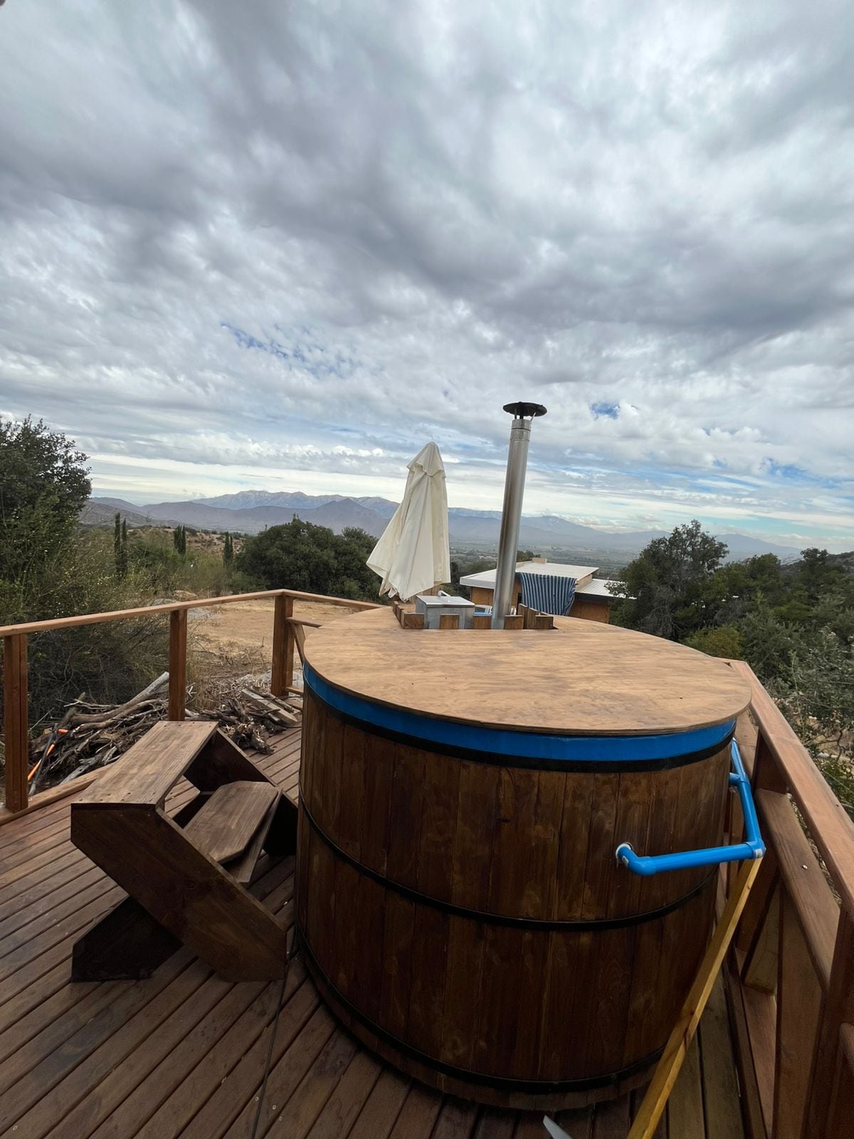 Escápate a Atardecer en Huelquén, una cabaña con tinaja caliente incluida a pocos minutos de Santiago. Ideal para una escapada tranquila en pareja, rodeado de naturaleza y con atardeceres únicos. Disfruta de la tinaja bajo el cielo abierto, un espacio acogedor con todo lo necesario para descansar y desconectarse. Incluye acceso a quincho y un entorno completamente tranquilo. “Tinaja caliente incluida sin costo adicional durante la estadía.”