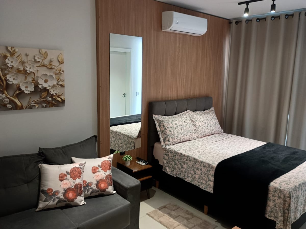 Gawdi esperjenza eleganti f 'dan il-post li jinsab f' post tajjeb. Fiċ-ċentru tal-belt ta' Cachoeira do Sul. Ħwienet u servizzi ewlenin fil-qrib. Studio sħiħ. Cooker tal-kċina, friġġ, microwave, forn tal-elettriku, hood, magna tas-sandwich, magna tal-kafè u ħanut tal-elettriku. Sodda queen, saqqijiet tar-rebbiegħa komdi. Sufan sodda. Purtieri b' blackout. smart TV. bjankerija tas-sodda bajda 100% qoton. xugamani tal-banju bojod 100% qoton. doċċa tal-elettriku. air cond., wifi, garaxx inkluż. Kiri ta' servizz tal-ħasil tal-ħwejjeġ.
