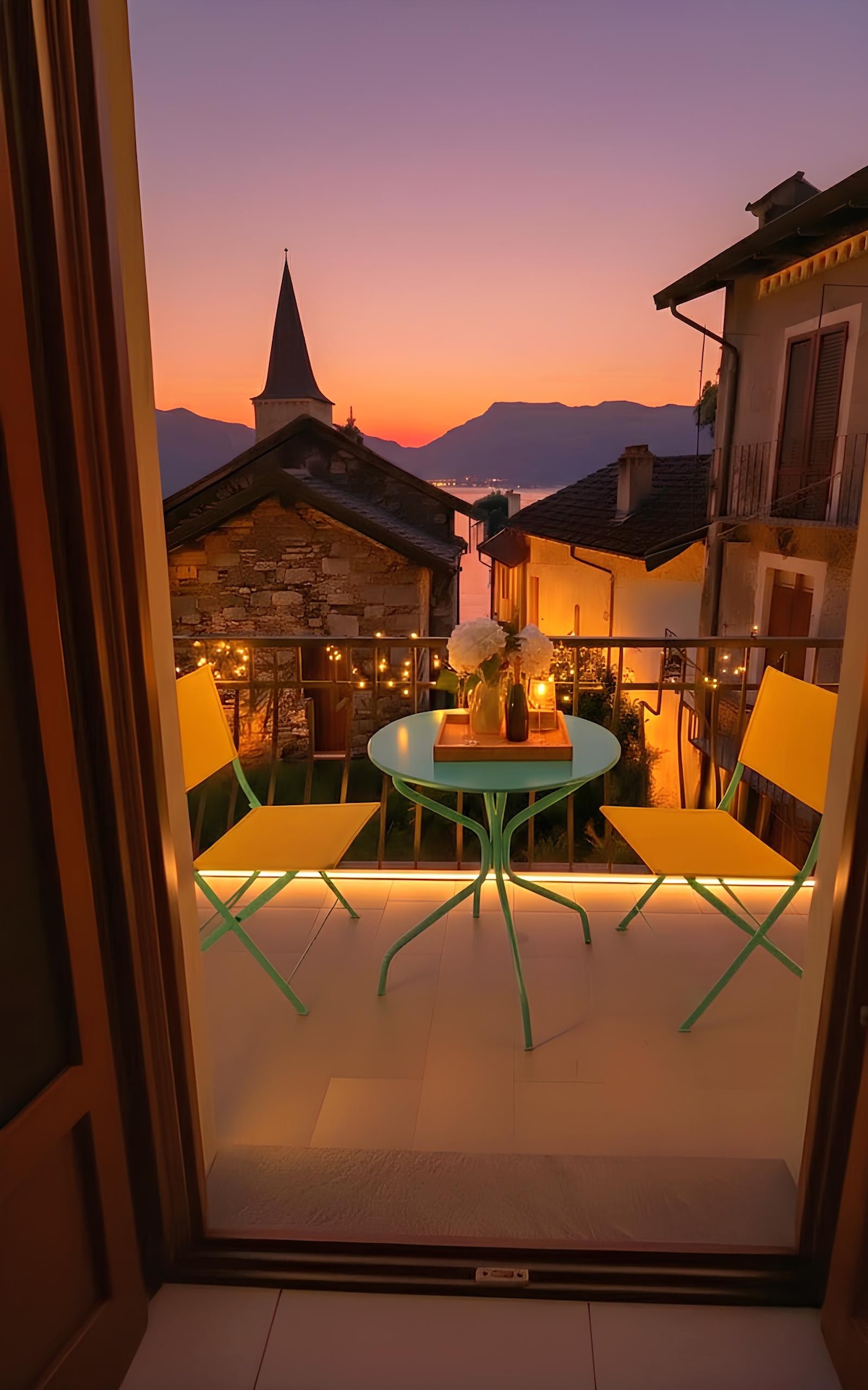 Terrazzin tal-ħolm b' veduta tal-lag ġewwa Oggebbio