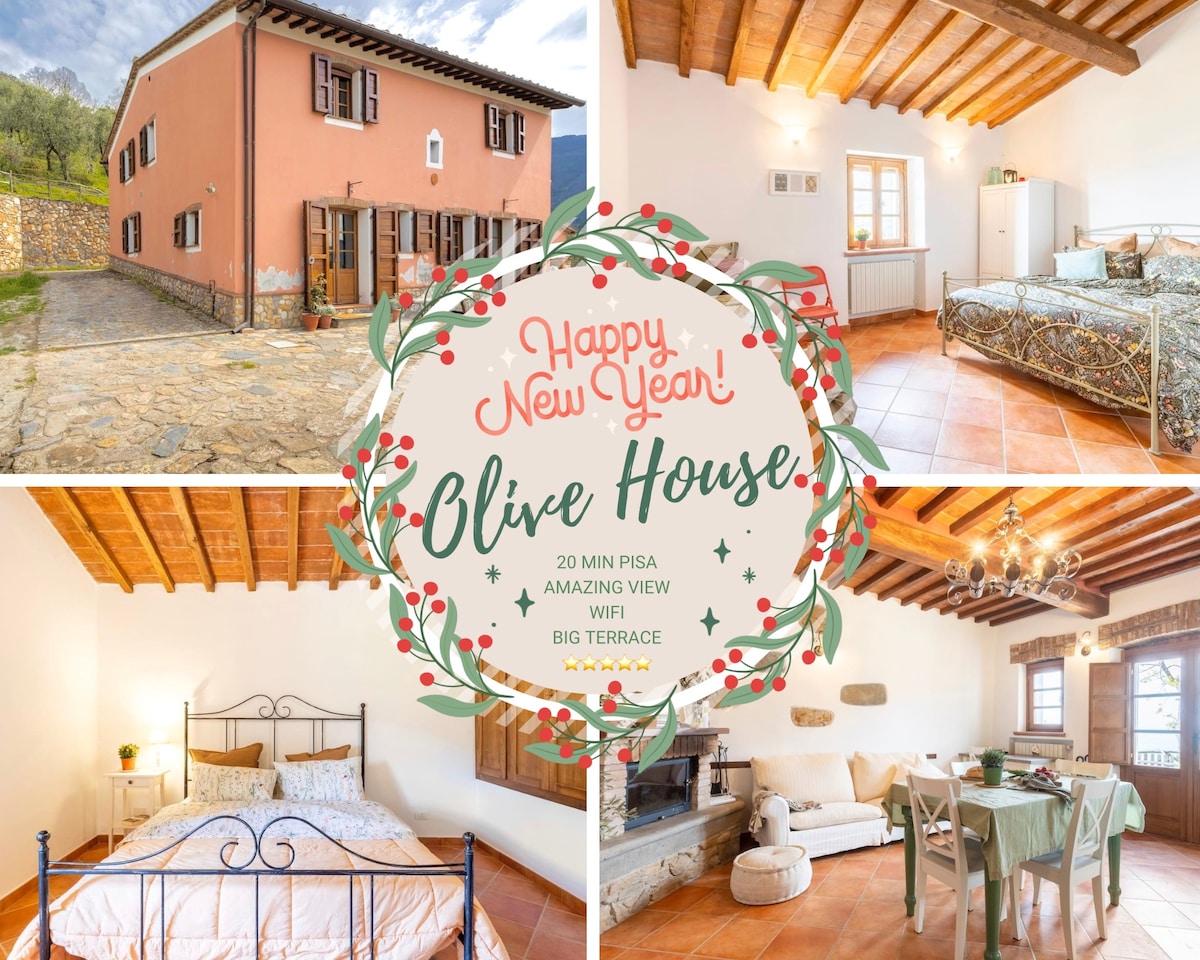 Benvenuto nella tua casa per le vacanze di Capodanno, Olive House Tuscany è una tenuta toscana in mezzo alle colline, e agli alberi di ulivo. Nel mese di ottobre e novembre puoi vederci al lavoro con la raccolta delle olive e se vuoi puoi partecipare. Casa molto ampia e soleggiata con una vista mozzafiato, perfetta per rilassarsi in famiglia o con gli amici, a 20 minuti di auto dalla Torre di Pisa.