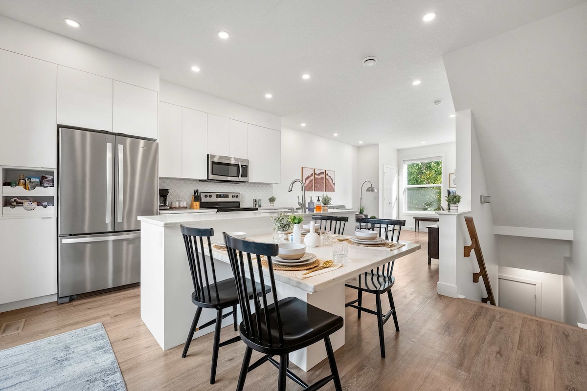 This spacious and beautifully designed 3-bedroom, 3-bath home blends modern comfort with light farmhouse charm all in the heart of Bridgeland. Just minutes from downtown Calgary, you’ll enjoy a chef’s kitchen, private patio, and cozy-yet-contemporary interiors, perfect for families, friends, or longer stays.