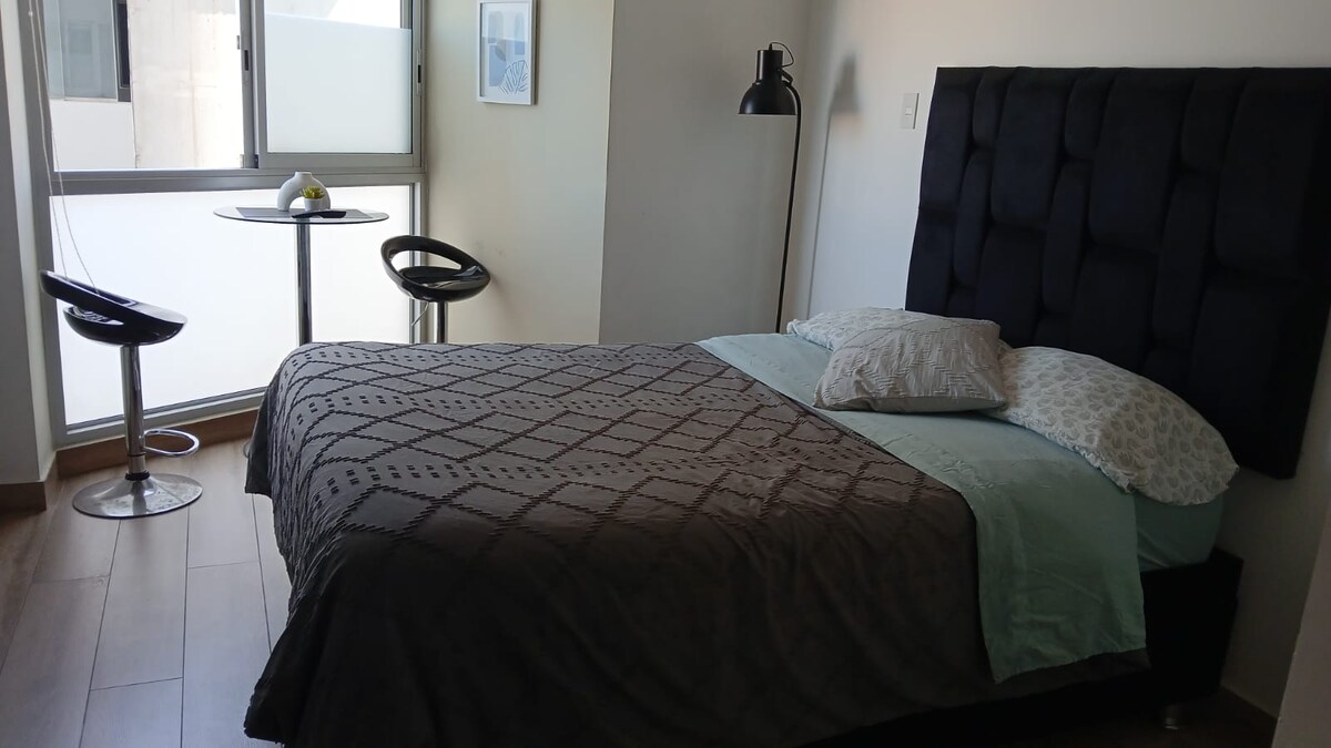 Skopri l-lussu u l-kumdità fl-appartament sofistikat tagħna, ideali għall-vaganza li jmiss tiegħek. Dan l-ispazju jinsab f' żona vibranti, passi 'l bogħod miċ-ċentri kummerċjali ewlenin tal-belt, ir-ristoranti, il-ħwienet, il-boutiques, it-terminals tal-art, joffri disinn modern u li jilqgħek. Ideali għall-koppji, għall-vjaġġi tax-xogħol, għall-waqfiet jew għal dawk li qed ifittxu post fejn toqgħod eleganti fil-belt! Aħna qegħdin 8 minuti 'l bogħod mill-Ajruport ta' New Jorge Chavez!