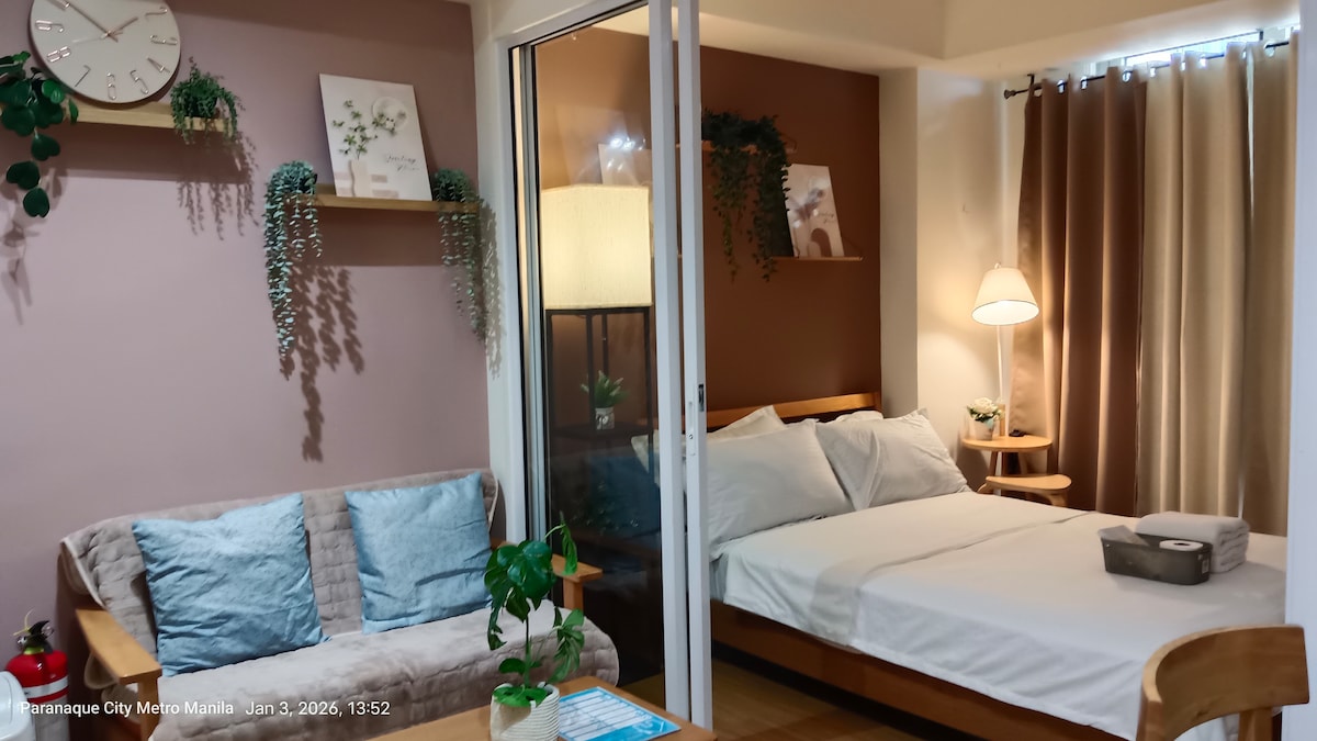 Il-post huwa biss distanza ta 'mixi lejn SM Bicutan u huwa biss 15-il minuta' l bogħod minn NAIA 1, 2 u 3. Ir-rata hija tajba għal 2 iżda persuna addizzjonali hija permessa sa 2 pax. Post minimalist b 'messaġġ tan-natura Post mill-aqwa li joffri dak kollu li teħtieġ għal żjara qasira. Orqod daqslikieku qiegħed id-dar. L-ambjent ta 'dar huwa dak li nimmiraw, gawdi ż-żjara tiegħek mal-għeżież tiegħek hawnhekk. Aħna noffrulek kamra eleganti u komda, oġġetti tal-kċina, bil-wifi u smart tv għad-divertiment.