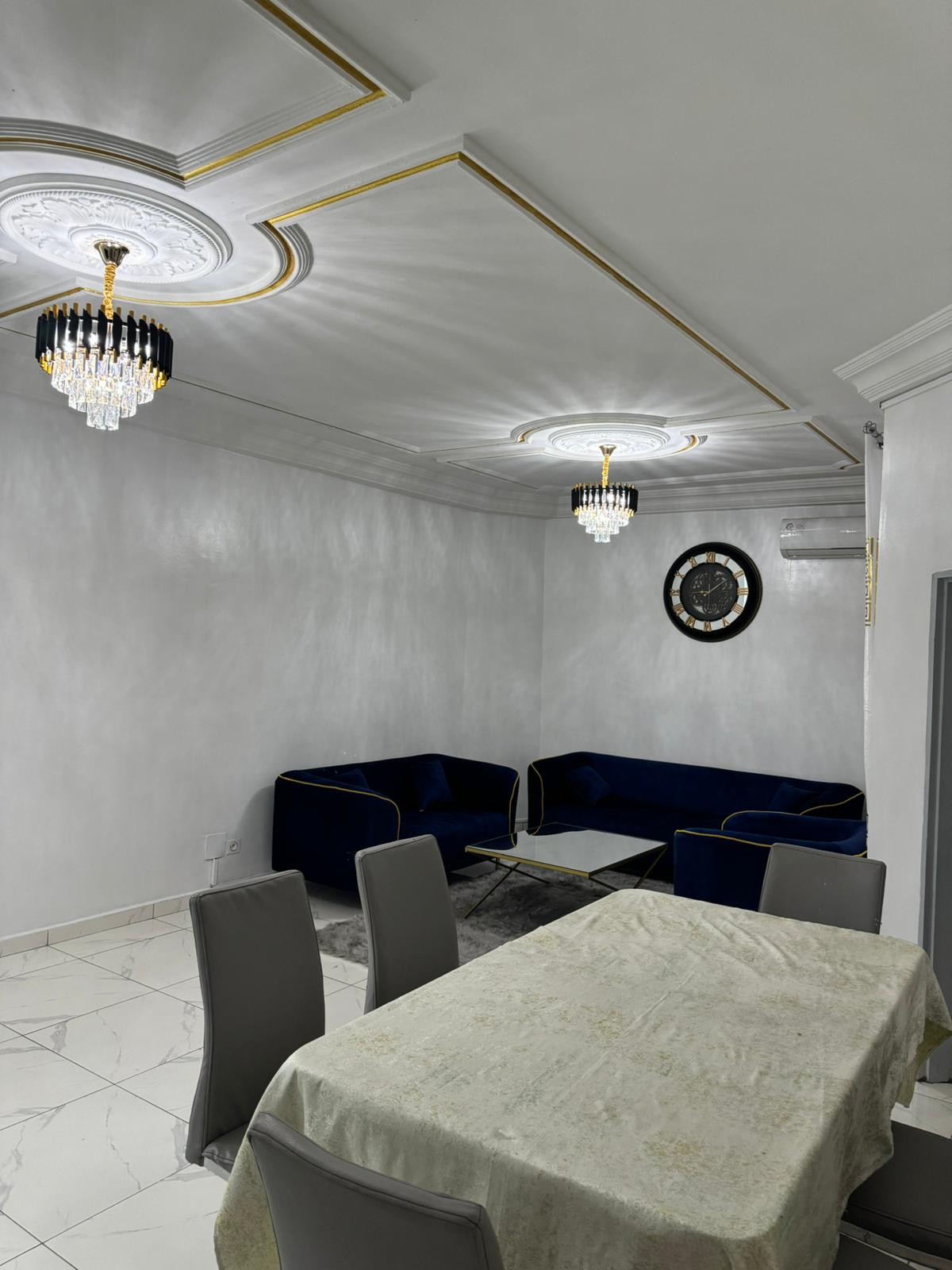 F 'żona kalma fiċ-ċentru ta' Bonamoussadi qrib supermarket u kummerċ quddiem ir-ristorant JC u Snack Opium. L-appartamenti huma magħmula minn: 2 Kmamar tas-sodda kbar bl-arja kkundizzjonata 2 Kmamar tal-banju 1 kċina kbira mgħammra kompletament kamra kbira tas-salott bl-arja kkundizzjonata Gallarija 1 Wi-Fi Heater tal-ilma Tħaffir Ġeneratur Manutenzjoni tal-appartament darba/jum minn persuna li tieħu ħsieb id-dar Servizz tas-sigurtà 24 siegħa kuljum Kamera tas-sigurtà Parkeġġ sigur Miter imħallas minn qabel għad-detriment tal-klijent