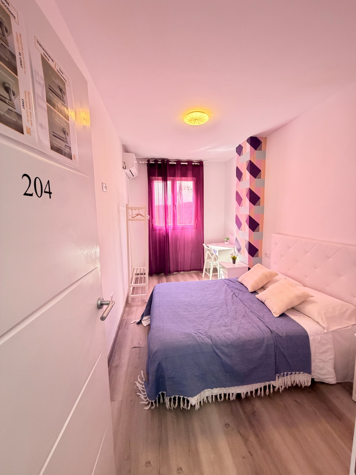 Habitación amplia, luminosa y confortable en pleno centro de Valencia, a pocos pasos de la Plaza del Ayuntamiento. Cuenta con una cómoda cama doble, zona de trabajo y un espacio acogedor ideal para descansar tras un día en la ciudad. Equipada con aire acondicionado y todo lo necesario para una estancia agradable. 📌 Situada en un segundo piso sin ascensor. Perfecta para disfrutar Valencia caminando, con una ubicación inmejorable y excelente relación calidad-precio.