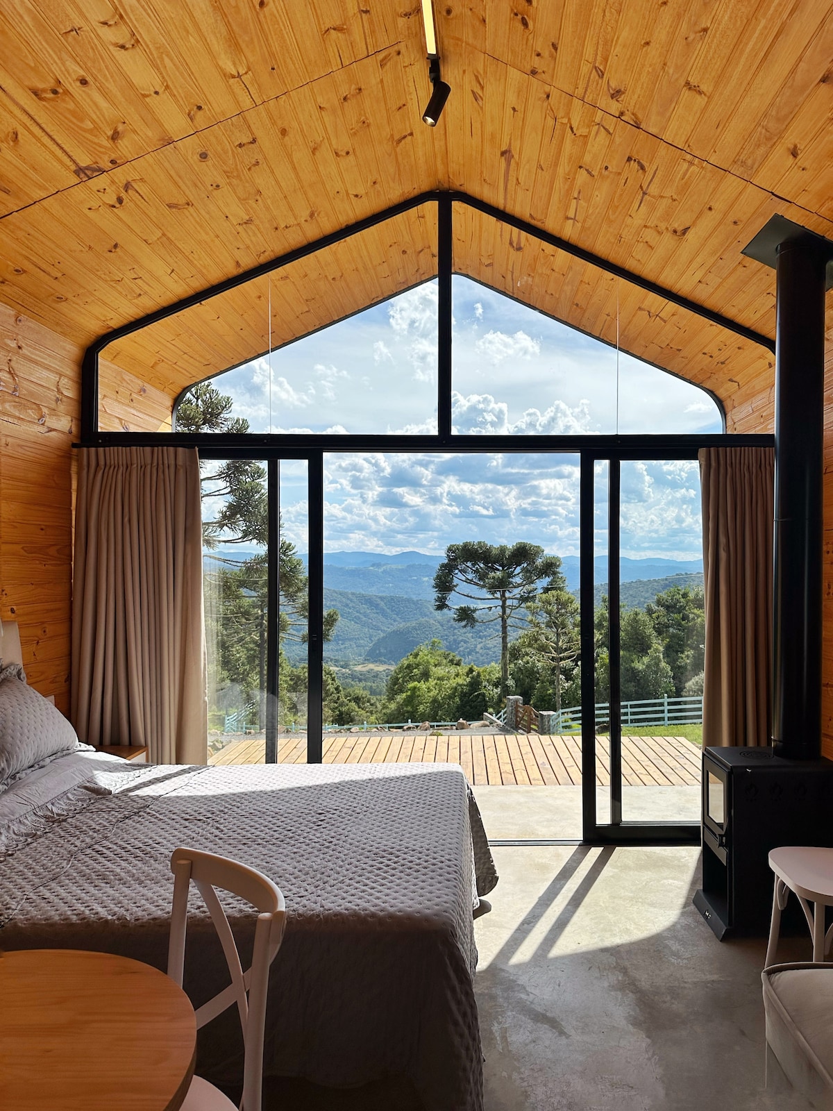 Hospedar se na Cabana Apu é como entrar em um silêncio que abraça. A luz atravessa o vidro e desenha o dia no chão, mudando de tom conforme as horas passam. Pela janela, a serra se impõe com presença e calma, lembrando que ali o tempo anda em outro ritmo. A Cabana Apu não é apenas um lugar para dormir. É um refúgio para desacelerar, se reconectar e sentir a força tranquila da montanha cuidando de você.