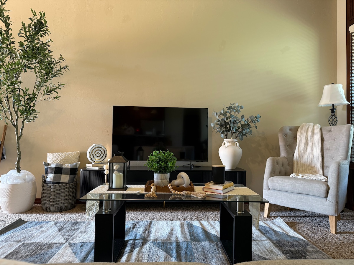 Dar mill-isbaħ b' 4 sodod u 2 ikmamar tal-banju ġewwa Yukon, OK- biss 20 minuta 'l bogħod miċ-ċentru ta' OKC. Gawdi bjankerija tas-sodda tal-istil tal-lukanda, hot tub rilassanti u TV fuq barra taħt dwal bil-kulur li jibdlu l-kulur. Adattat għall-pets b' dar għall-pets b' arja kkundizzjonata. Jinkludi ċarġer tal-vetturi elettriċi, magna tal-ħasil/dryer, aċċess għall-garaxx u kenn għall-maltempati. Inqas minn 5 minuti sa ħwienet tal-merċa u ristoranti. Ideali għall-familji, il-koppji u l-vjaġġaturi għax-xogħol - ospitati b' mod interessanti mill-familja tagħna għal tiegħek.