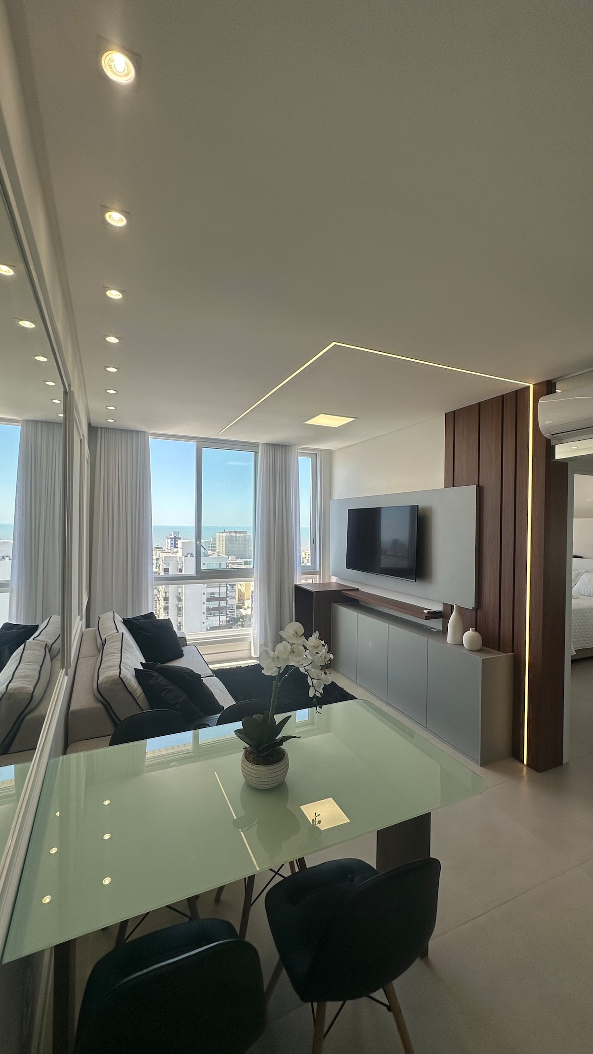 "Appartament b'veduta ta' 180° fuq l-oċean, biss żewġ blokok bogħod mill-bajja. Hemm 140 m² ta' kumdità, b'kamra tas-sodda en-suite, żewġt ikmamar tas-sodda semi-en-suite, kamra tas-sodda integrata mal-kċina, toilet u żona kbira għall-barbecue. Il-kmamar kollha għandhom sodda doppja u arja kkundizzjonata. L-ispazju tal-garaxx huwa inkluż. Qrib il-pjazez, is-swieq u l-furnara, ideali biex tgawdi r-reġjun b'mod prattiku." Il-bjankerija tas-sodda mhix inkluża fil-kiri. Disponibbli bħala żieda għal R$200.00 — itlob minn qabel.