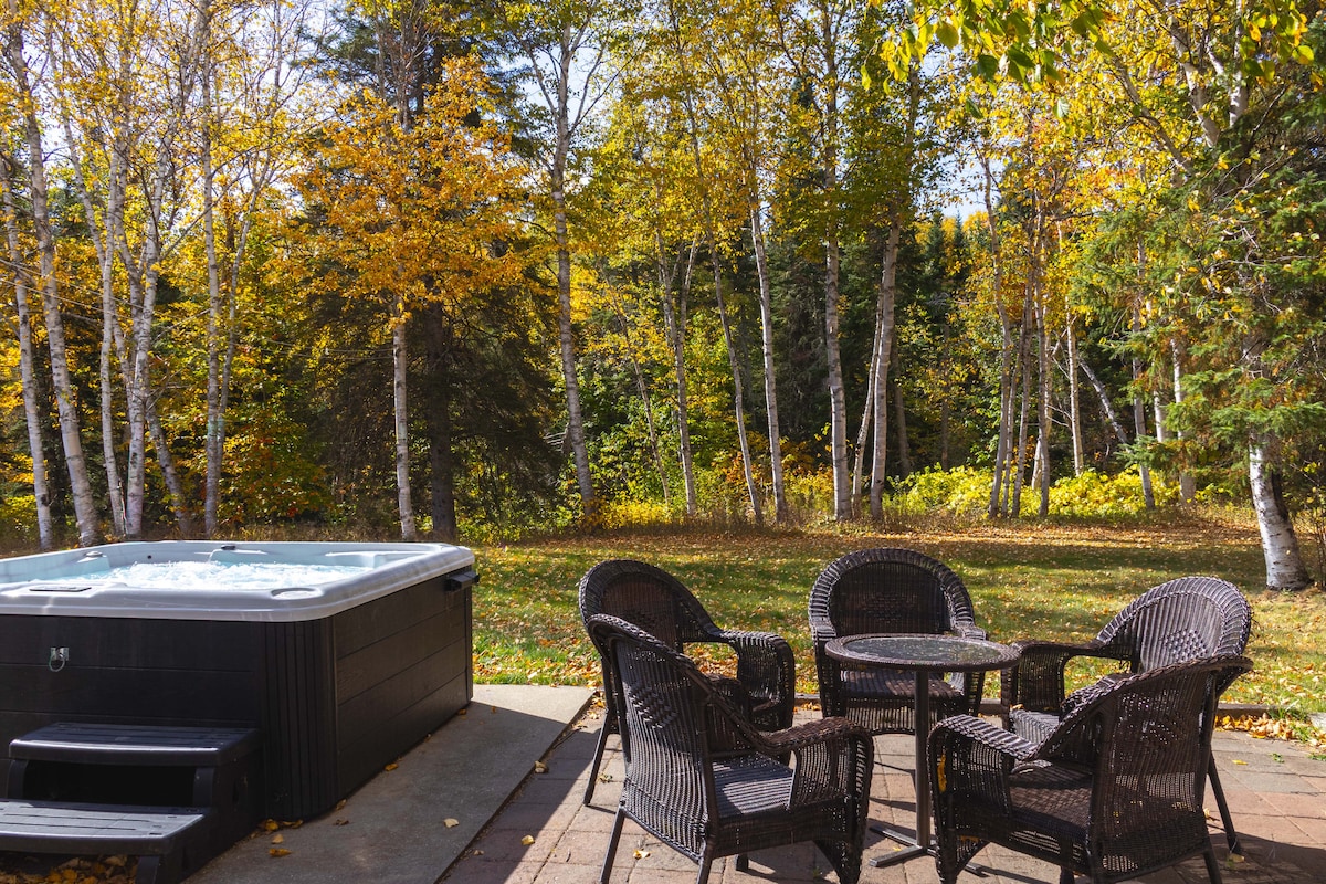 Moħbi f 'Charlevoix sabiħ, li jinsab fil-muntanji Laurentian u li jħares fuq ix-xmara St. Lawrence huwa Chalet Le128. Tleqq, spazjuża u komda b 'ritratt uniku ta' veduti perfetti minn kull tieqa. Gawdi l-iskiing inkredibbli f 'Le Massif fil-qrib, esplora l-mogħdijiet tal-mixi tul ix-xmara u l-muntanji, gawdi ħelu lokali u u ara l-galleriji ta' Baie Saint Paul fil-qrib. Irrilassa fil-hot tub, BBQ fuq il-gverta privata u mistrieħ fiż-żewġ kmamar tas-sodda ġenerużi. Soqfa vaulted!