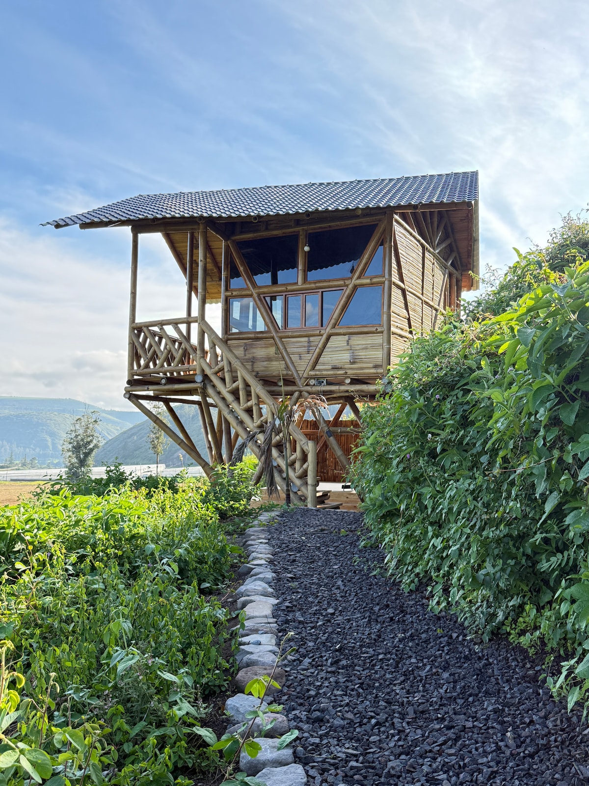 Kabina tal-Bambù b'Jacuzzi u Veduta ta' Cotacachi
