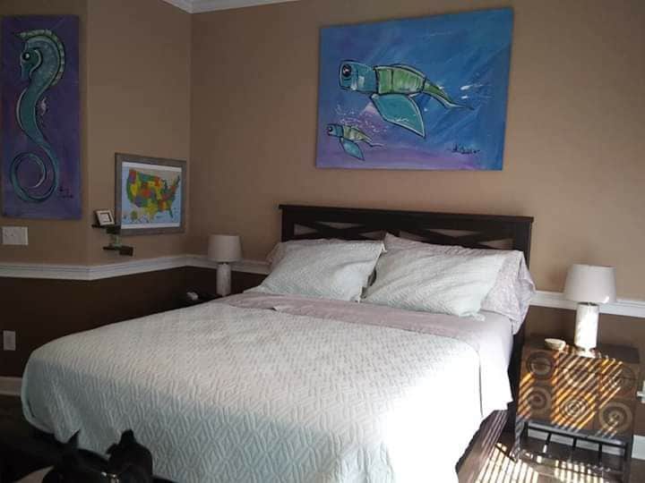 Merħba fi spazju privat komdu għall-vaganza tiegħek f 'Myrtle Beach. Gawdi kamra tas-sodda ewlenija b 'kamra tal-banju privata. Hemm daħla privata separata b 'self-check-in imma m' hemm l-ebda aċċess għad-dar ewlenija. Il-kamra hija mgħammra b 'WIFI, smart tv ta' 50"b' Hulu, sodda queen, friġġ żgħir, microwave, magna tal-kafè b' kafè u te b 'xejn. Din id-dar tinsab fl-aħħar ta 'cul-de-sac kwieta u tinsab qrib ta' dak kollu li myrtle Beach għandha x' toffri! L-ajruport, ix-xiri, ir-ristoranti u l-bajjiet jinsabu 10-15-il minuta 'l bogħod.