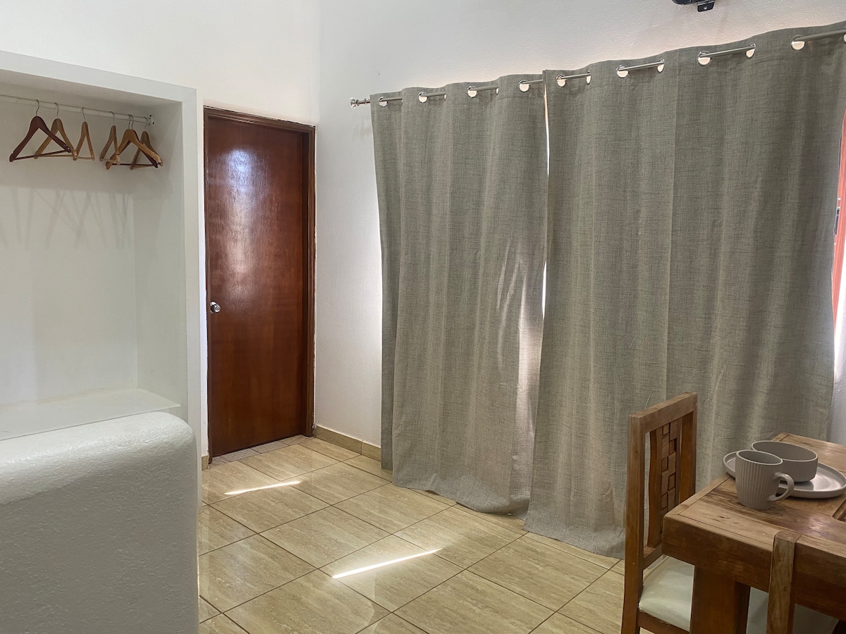Disfrute de este acogedor estudio nuevo, perfectamente ubicado a solo 60 metros de la playa. Cuenta con cama King Size, Smart TV, Internet, baño privado y cocina equipada para su comodidad. Como huésped, tendrá acceso a la alberca común. La capacidad máxima es para 2 personas. El estacionamiento es disponible en la calle. Perfecto para una escapada relajante cerca del mar.