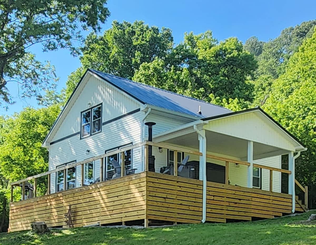 Kabina faċċata tax-xmara għal 10, Hot tub, opt Guesthouse
