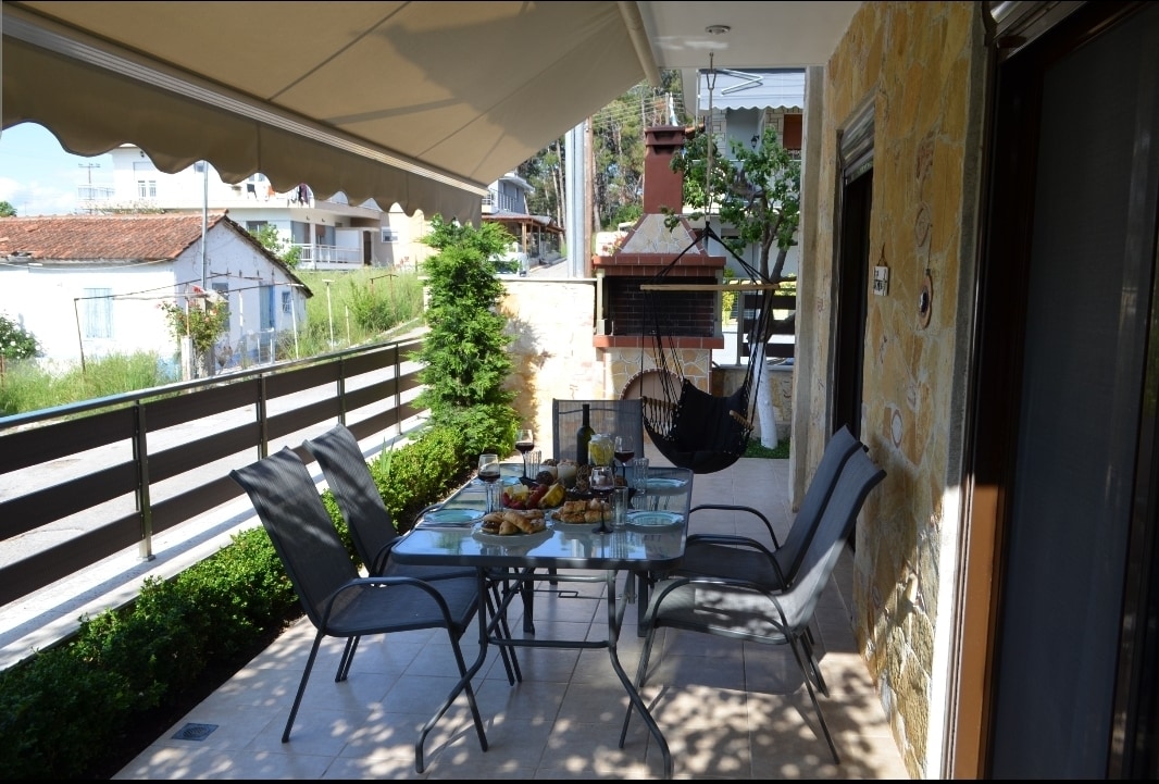 Din id-dar tal-vaganzi ħelwa qrib Nea Fokea, Halkidiki, toffri taħlita paċifika ta' sbuħija tan-natura u tal-kosta. Madwar foresti tal-arżnu u bajjiet bir-ramel, hemm akkomodazzjoni li toffri lilha nnifisha b' veduti mill-isbaħ tal-Baħar Eġew u t-tieni peniżola ta' Halkidiki. Il-propjetà tinkludi ġnien spazjuż bi grawnd żgħir tal-basketball, ideali għar-rilassament. L-appartament tat-tieni sular joffri salvataġġ serju, ideali għal dawk li qed ifittxu post kwiet fis-sajf 'il bogħod mill-folol.