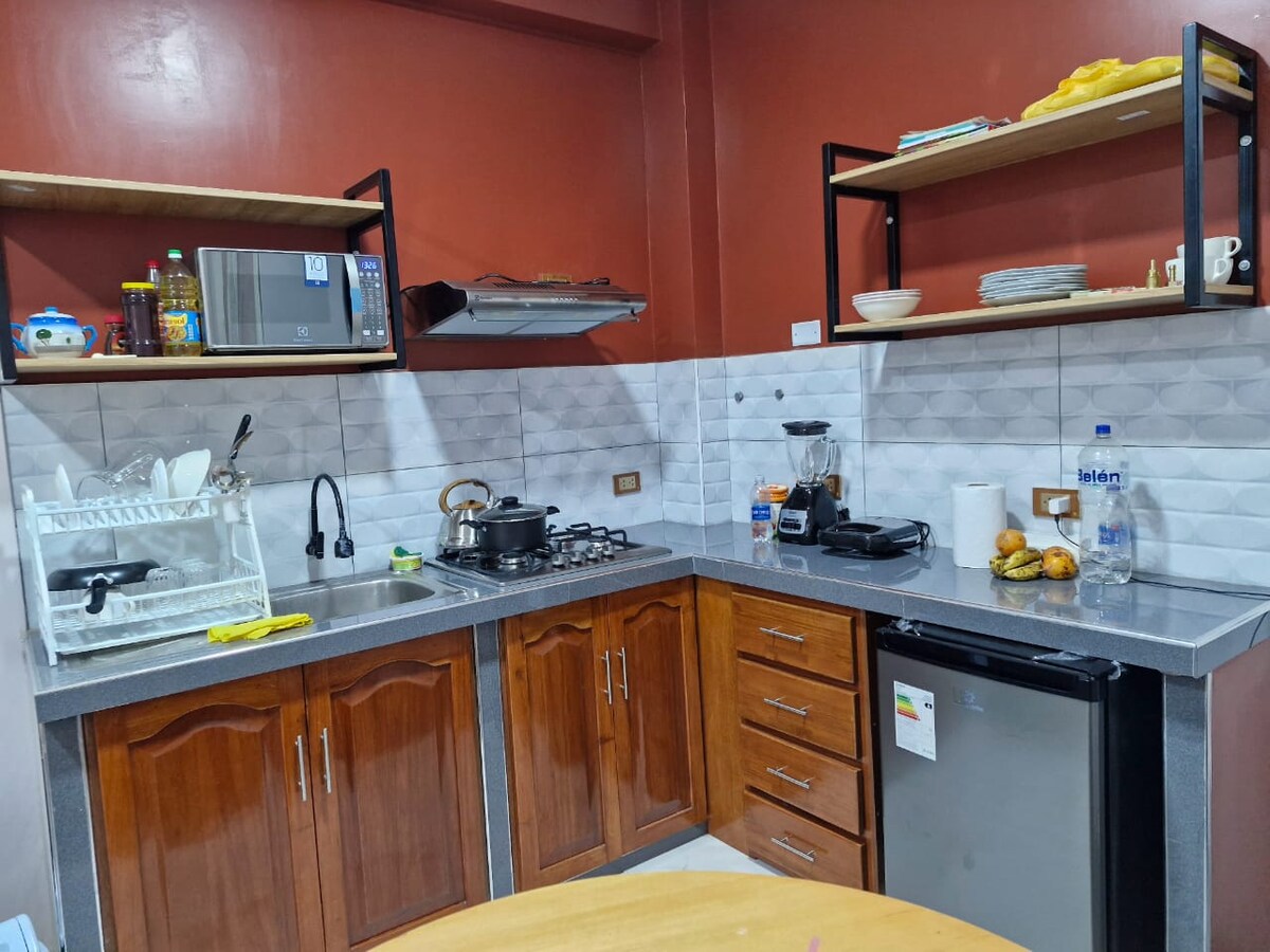 AC + Kċina + Ilma sħun + Netflix + Magna tal-ħasil (u aktar!) Il-familja u l-ħbieb tiegħek se jkunu qrib kollox f 'din l-akkomodazzjoni spazjuża u li tinsab fiċ-ċentru ta' Tingo María. Tista 'timxi lejn il-Pjazza Ewlenija, is-suq, l-aġenziji turistiċi, it-trasport u ħafna iktar! Barra minn hekk, l-akkomodazzjoni hija biss żewġ blokki minn Puente Corpac, l-aċċess ewlieni għal attrazzjonijiet turistiċi bħal kaskati, żoni rikreattivi, għerien, eċċ. L-iktar ħaġa importanti hija li tgawdi ż-żjara tiegħek!