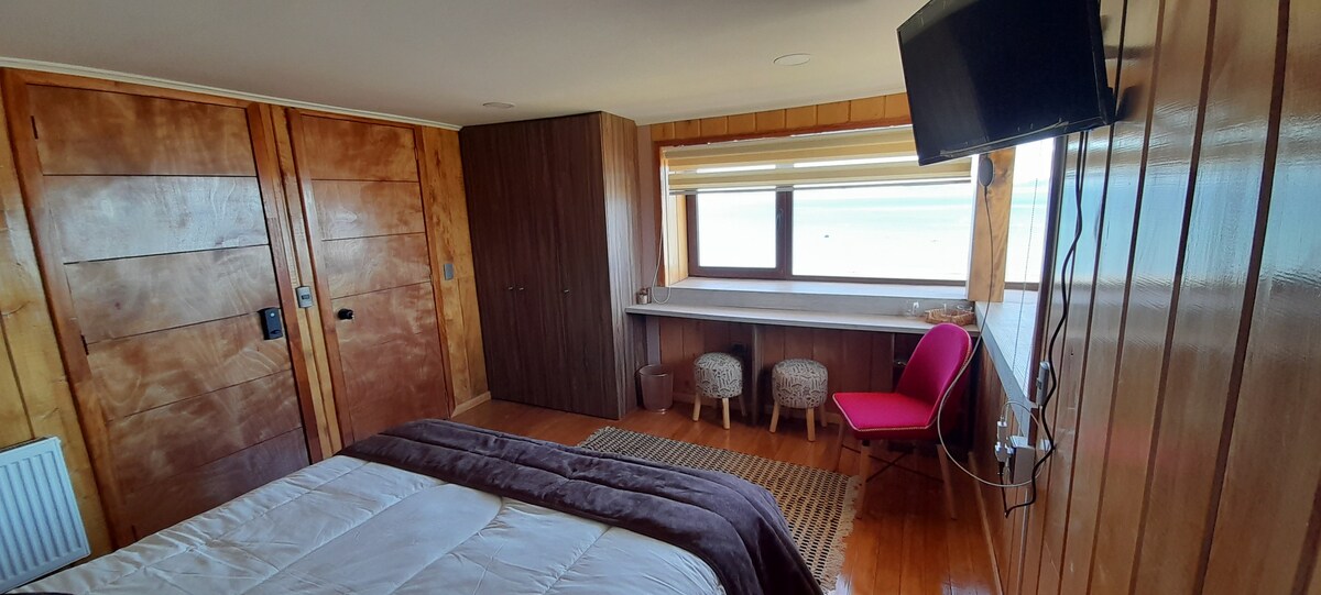 Kamra b 'sodda doppja, gallarija kbira u veduta sabiħa ta' quddiem tal-oċean. Dan jinkludi kolazzjon mill-aqwa b 'veduti inkredibbli tal-fjord ta' Castro u tax-Xmara Gamboa, kamra tal-banju privata, tisħin ċentrali u WIFI. Ibbukkja issa ġewwa Palafito Hostel de Chiloé.