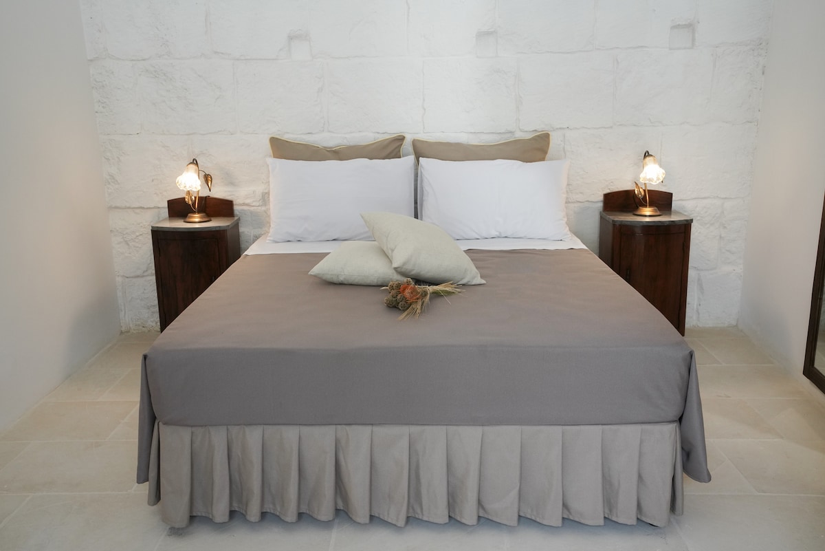 Se tilqa' f'wieħed mis-suites kbar ta' Palazzo Mandurino, il-post ideali għal btala lussuża, b'ħafna kumdità u ħafna ħsieb. Kull suite, li se tiġi assenjata lilek mal-wasla tiegħek, għandha sawna jew kamra tal-fwar u hot tub għal żewġ persuni. Inti se tkun mgħaddas f' bini storiku, mgħammar bi spazji u servizzi mfassla apposta għal koppja, organizzati biex jilqgħu l-familji u l-gruppi ta' ħbieb. Tista' toffri kċina żgħira jekk titlobha.
