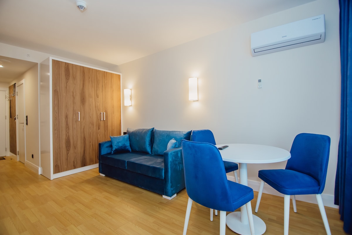 Современный номер студия 40kv ( maximum floor 38) С прекрасным видом на море , город , горы . Здесь будет комфортно как семейной паре , так и гостям посетившим город по рабочим делам. Комфортный микроклимат поможет поддерживать Сплит-система Daikin. В здание имеются спа - бассейн ( оплачивается отдельно через отель Мариот )