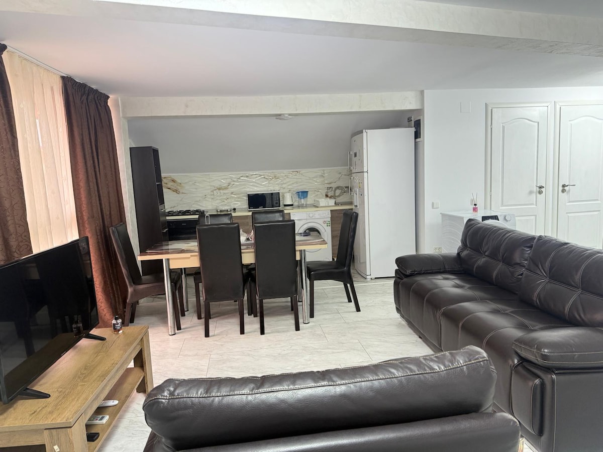 Appartament komdu sħiħ ta '70 mp2 li toqgħod għad-dispożizzjoni tiegħek bl-iskop li jġiegħlek tħossok li hija t-tieni dar tiegħek għal prezz affordabbli. Inizjalment huwa għal 4-6 persuni (2 sodod Queen, 2 sodod singoli u sufan sodda waħda). L-appartament jinsab f 'viċinat sabiħ u kalm. Attivitajiet differenti joqogħdu għad-dispożizzjoni tiegħek fil-belt sabiħa, Tulcea.