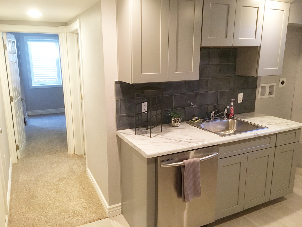 Suite Moderna u Komda għall-Klijenti ġewwa SE Denver! Oqgħod f' din is-suite li għadha kif inbniet b' sodda waħda/kamra tal-banju waħda f' komunità ta' townhouse sigura u kwieta. B' soqfa ta' 10 piedi, l-ispazju jinħass miftuħ u attraenti. Orqod sod fuq saqqu queen Nectar b' lampi li jintmessu u portijiet tal-iċċarġjar. Irrilassa fiż-żona tas-salott b' smart TV, stazzjon tax-xogħol, fann tas-saqaf, sufan li jinġibed 'il barra u kċina żgħira. Ideali għax-xogħol jew għad-divertiment, din is-suite eleganti toffri kumditajiet moderni f' post mill-aqwa!
