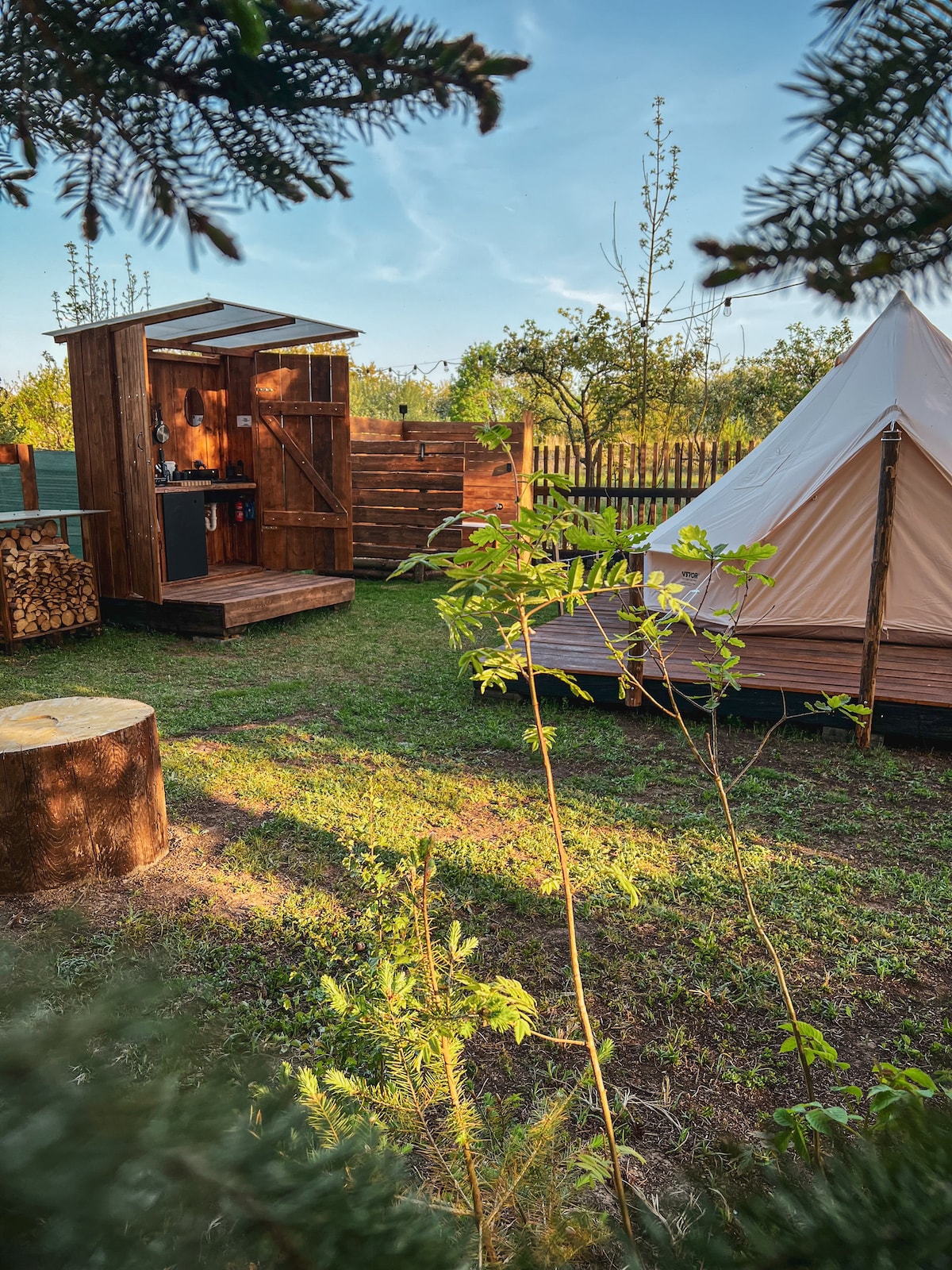 Glamping taħt l-istilel - Il-kumdità tiltaqa' man-natura Merħba fit-tinda tal-glamping imżejna b' imħabba tagħna - il-vaganza tiegħek qrib il-Ġnien God. X 'għandek tistenna: - Tinda lussuża (d:4m) minn Lotus Belle b' sodda doppja komda (140x200) - Dawl u għamara komda - Żona bilqiegħda ġewwa u barra - Post għall-grill - L-elettriku,il-kċina ,id-doċċa u t-toilet f' kamra separata Inklużi ċ-ċirkulazzjoni tal-għasafar u ċ-ċaqliq tan-naħal. Għandek iż-żona kollha għalik biss .