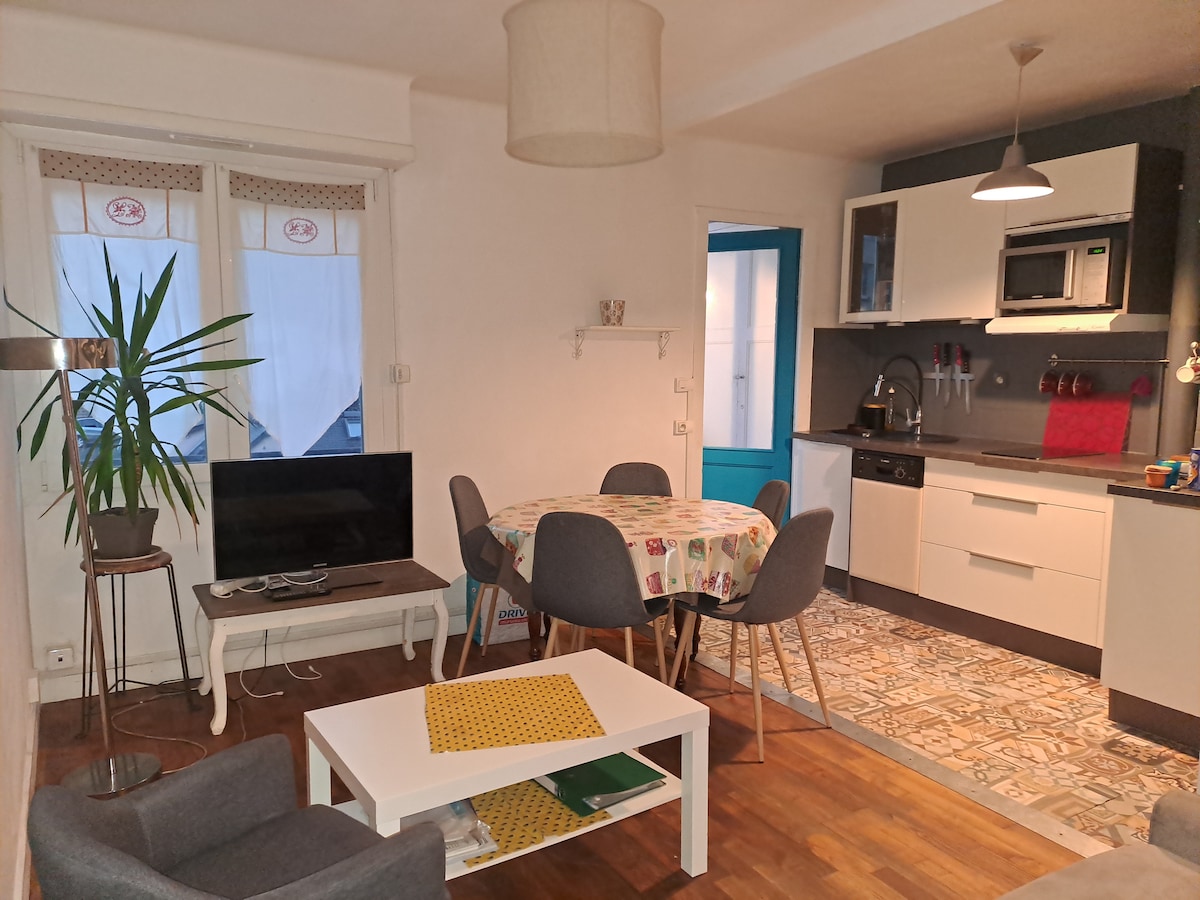 Studjo mill-isbaħ fuq il-bejt (32m2) kompletament rinnovat, 10 minuti bil-karozza tal-linja 'l bogħod miċ-ċentru tal-belt. Waqfiet tax-xarabank (kull 7 minuti) u ħwienet f 'qiegħ il-bini (furnara, bank, spiżerija, creamery, snack bar, Scarabé u supermarket miftuħin nhar ta' Ħadd filgħodu). Possibbiltà ta' 4 sodod: sodda doppja + sufan sodda waħda. Lożor u xugamani pprovduti. Aċċess bla ħlas, mingħajr sigħat imposti (mill-inqas 16:00 tal-wasla, check-out mhux aktar tard mill -11:00): kaxxa biċ-ċavetta fuq barra. Huwa biss qed jistenniek!