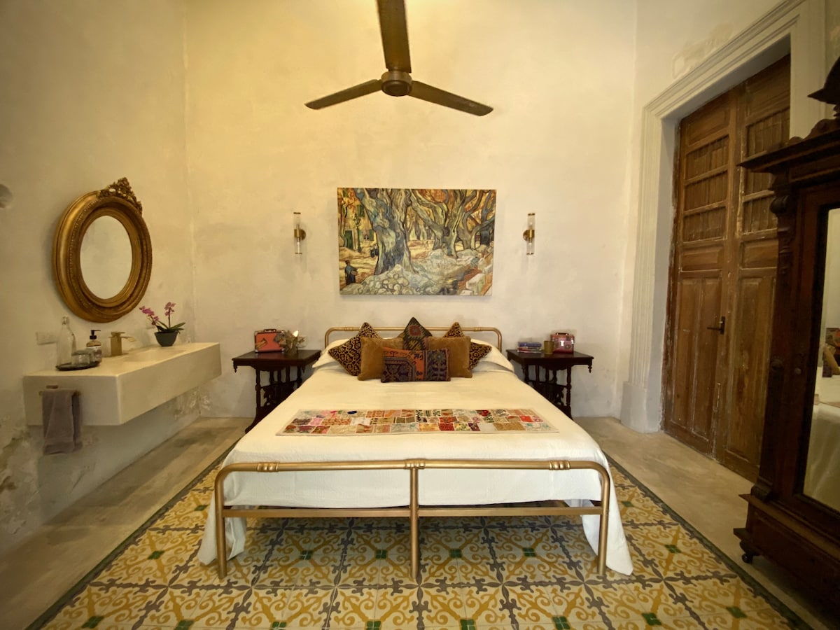 Villa storika b' żewġt ikmamar tas-sodda li tinsab 'il bogħod bil-mixi mill-iktar siti popolari fiċ-ċentru storiku ta' Merida. Il-villa għandha soqfa ta '18-il pied, l-art tal-għaġin oriġinali magħmula bl-idejn u l-għamara antika. Il-villa għandha terrazzin kbir b 'żewġ lounges chaise li jħarsu lejn ġnien tropikali lussuż. Il-Villa għandha Kolazzjon Gourmet inkluż kuljum u aċċess għal pixxina fuq il-bejt li jmiss.