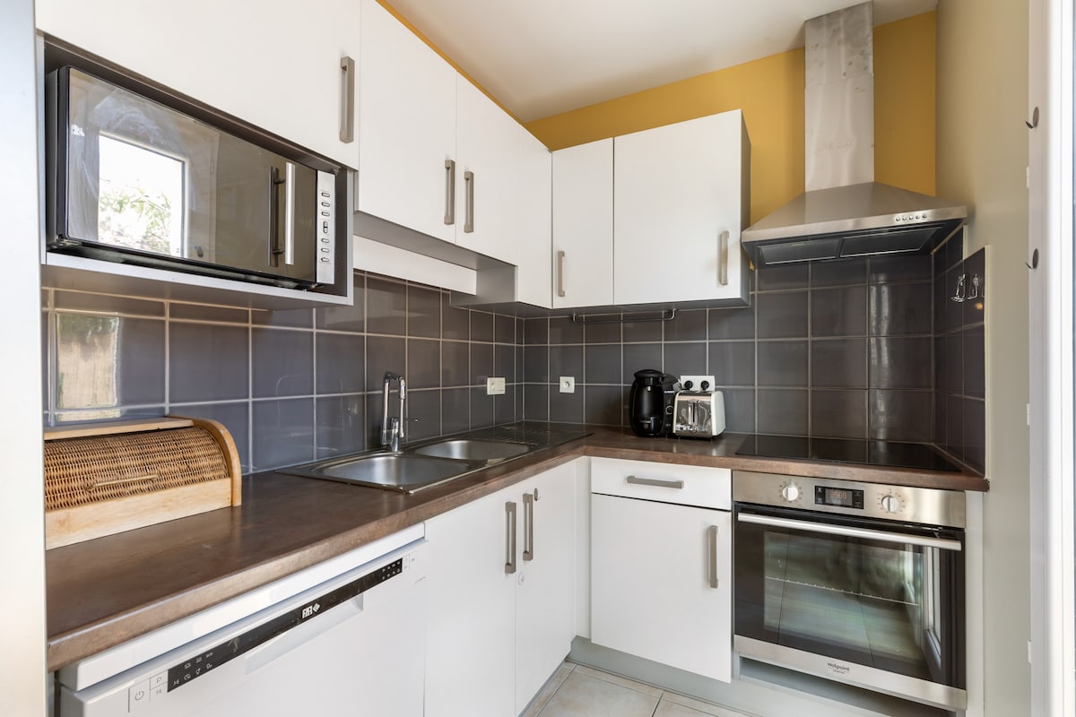 Appartament għall-familja ta’ aktar minn 60 m², li ġie rinnovat dal-aħħar, li jinsab fl-ewwel sular tal-villa tagħna ġewwa Hérault, b’ġnien privat u daħla indipendenti. Il-Canal du Midi, li huwa ideali għall-familji u għal dawk li jsuqu r-rota, jinsab 5 minuti mixi bogħod 🚴♀️. 10 minuti ’l bogħod minn Béziers u 15-il minuta ’l bogħod mix-xtajtiet (Valras, Portiragnes, Sérignan, Vias, Vendres). 🛒🍕 Ħwienet fil-qrib. 🏊♀️ Pool maqsuma mal-oħrajn minn Lulju sa Settembru. Arja kkundizzjonata mhux obbligatorja.