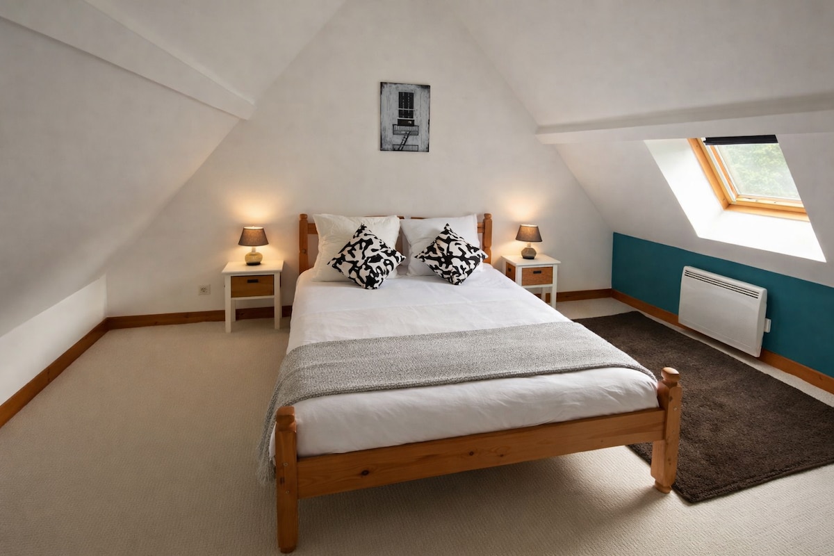 L-istudjo qiegħed ħames minuti mixi fiċ-ċentru ta 'Chaillac, bil-bars, ir-ristoranti u s-supermarket tiegħu. Imxi t-triq l-oħra u tkun qrib il-lag, bil-bajja u ż-żoni għall-pikniks tagħha. Parkeġġ bla ħlas. L-istudio għandu daħla privata u jinsab taraġ wieħed 'il fuq. Aħna nipprovdu sodda doppja u sufan sodda, kċina, sala tal-ikel u kamra tad-doċċa separata. Il-kċina hija mgħammra bi friġġ, microwave, hob b 'żewġ ċrieki u kitla. It-televiżjoni għandu kanali Franċiżi, iżda għandu portijiet hdmi u USB.