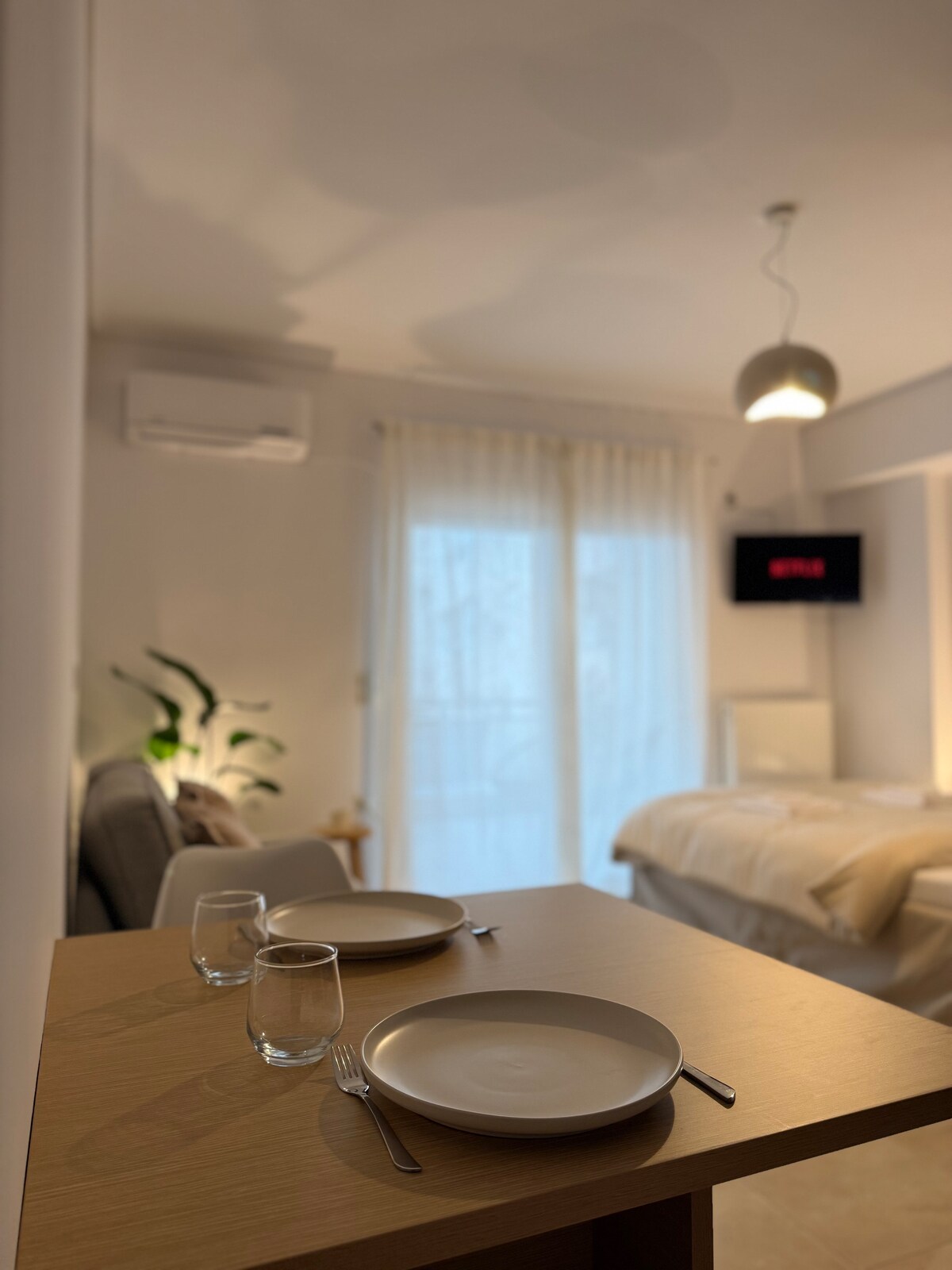 Merħba. L-appartament tagħna jinsab fiċ-ċentru, b' aċċess faċli għal ħwienet, kafetteriji, supermarket u l-bajja ta' Chalkida. Hija mgħammra b' sodda doppja komda, kċina, arja kkundizzjonata, Wi-Fi u kamra tal-banju moderna – dak kollu li għandek bżonn għal żjara komda u pjaċevoli. Bażi ideali biex tiskopri l-belt bil-mixi jew tirrilassa wara l-mixja tiegħek! Suġġerita għall-koppji jew għall-vjaġġaturi waħedhom. Qed nistennew bil-ħerqa li narawk!