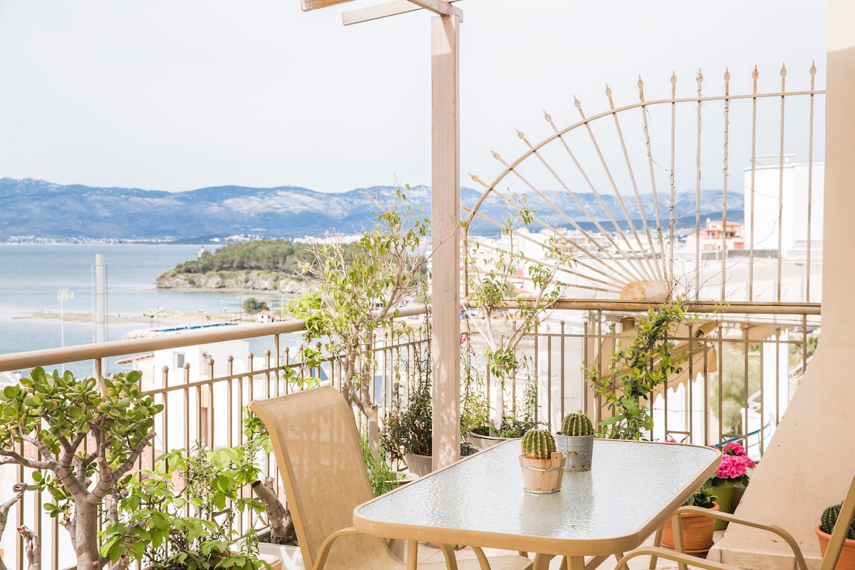L-appartament huwa kompletament mgħammar u rinnovat kompletament fl-2024. Tinsab quddiem il-bajja (b' veduta mill-isbaħ) fejn tista' tgawdi l-għawm matul il-ġurnata kollha! Dan joffri : vjaġġi ta' jum lejn bajjiet mill-isbaħ tal-gżira ta' Evia, hiking f' Mt Dirfys, żjara f' Ateni (f' distanza ta' 50 minuta sewqan). Tinsab fl-art 3d (lift), 5 minuti 'l bogħod miċ-ċentru tal-belt tal-belt ta' Chalkida ħajja. Dan joffri opportunità eċċellenti biex tgawdi l-btajjel tas-Sajf, il-waqfiet tar-Rebbiegħa/Ħarifa jew il-vaganzi tax-Xitwa.