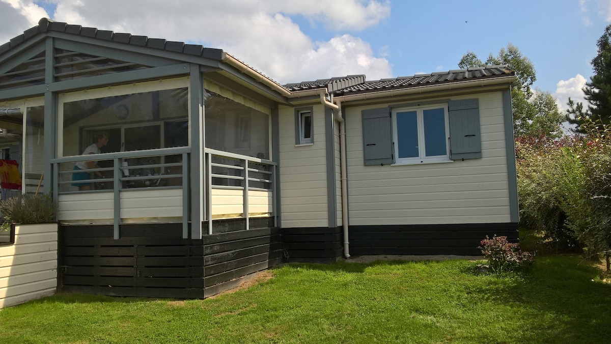 !! Piscine ouverte du 15/5 au 15/09 Bienvenue dans notre chalet au cœur du bocage Normand. Idéalement situé dans un parc résidentiel calme . Accès à 50 mètres d'une grande piscine commune , ouverte du 15/5 au 15/9 (chauffée) & d'un mini-golf, tennis de table, pétanque, jeux pour enfants. Le chalet est tout confort : Cuisine toute équipée, climatisation, véranda, terrasse, 2 chambres séparées, une salle à manger et une salle de bain , avec des WC séparés. À bientôt