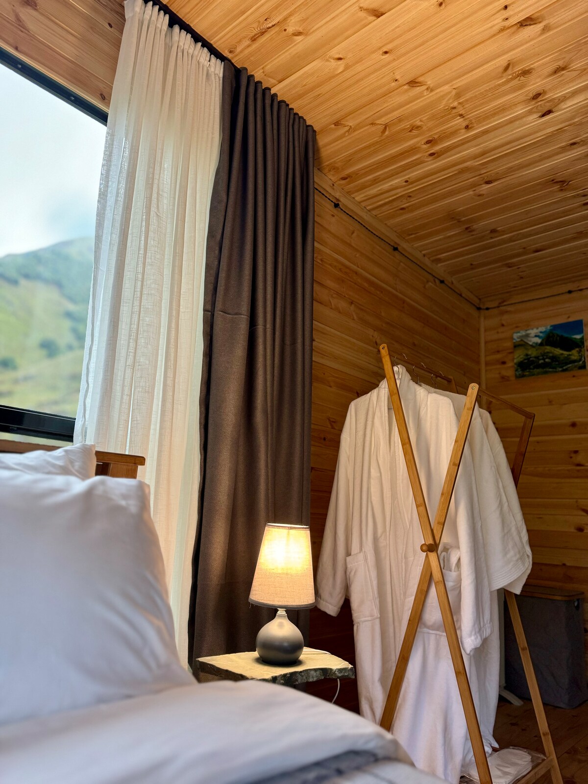 Il-post huwa paċifiku ħafna u privat, il-veduti huma speċjali ħafna u bla ħlas, għandna Terrazzin kbir Privat, kamra tas-sodda mhux tas-soltu b' veduta panoramika ta' Muntanji Kazbegi kbar, snin kbar u għamara ta' barra.