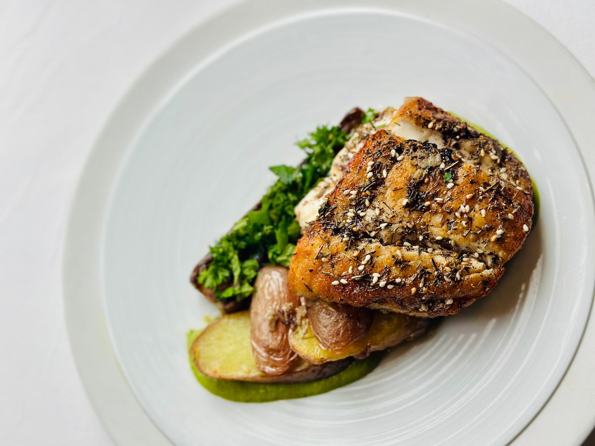 Kok li jispeċjalizza fil-menus tad-dewqan kostali b' influwenzi kuraġġużi tal-Karibew u tan-Nofsinhar.