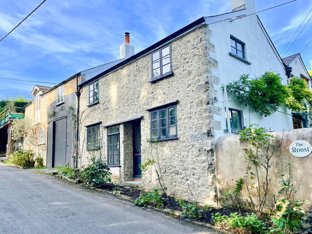 AUTUMN 2025 - short stays now available - 10% weekly discount ...Self-catering, luxury cottage, riverside walk 1 mile to Lyme Regis. Private carport parking, EV charge, roof garden. Walk to town and beach or 5 mins drive. SUMMER STAYS WEEKLY SAT arrive/depart - please see calendar. BT WIFI and NETFLIX. Village pub Talbot Arms 10 min walk. Converted stables, stone walls, oak beams, well-equipped kitchen cosy interior . King size double bed & bathroom upstairs. Laptop friendly table .