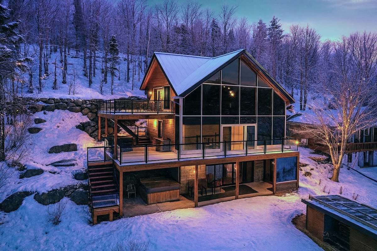 Chalet kbir li jista 'faċilment jakkomoda sa 14-il persuna! B 'fireplace tal-injam fuq ġewwa u l-ispa fuq barra tagħha, din il-cottage se tagħmel iż-żjara tiegħek aktar pjaċevoli! Inti se tkun kuntent bl-art kompletament imsaġġar ideali għal snowshoe off-trail fix-xitwa jew biex tiskopri n-natura fis-sajf, iżda fuq kollox mill-lag li jista 'jgħum jew navigabbli għal dgħajjes żgħar/żgħar disponibbli fuq il-post. Din iċ-chalet se tiltaqa 'mal-attivitajiet kollha tal-familja! *Il-klieb jistgħu jkunu b 'leħen għoli meta jintalbu.